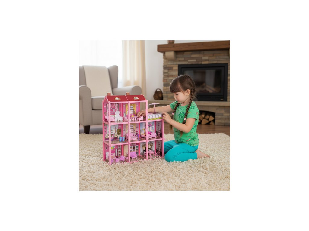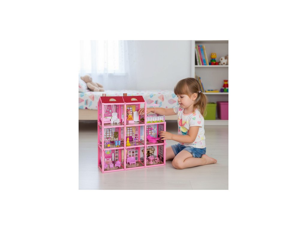 Domeček pro panenky Iso Trade je barevná a prostorná vila, která okamžitě probudí fantazii a povzbudí k nekonečnému kreativnímu hraní. Tři úrovně, osm pokojů a terasa vdechnou každému příběhu život a vaše dítě si může interiér vyzdobit přesně podle svých představ. Toto je perfektní sada pro děti, které milují hraní rolí a vytváření si vlastního pohádkového světa.
