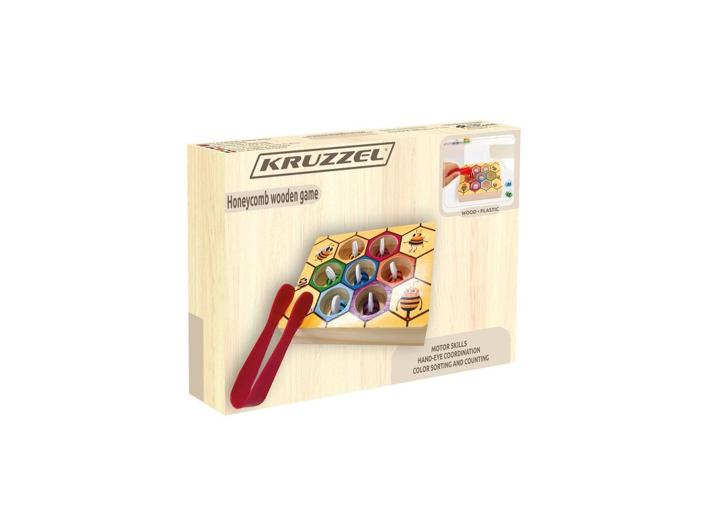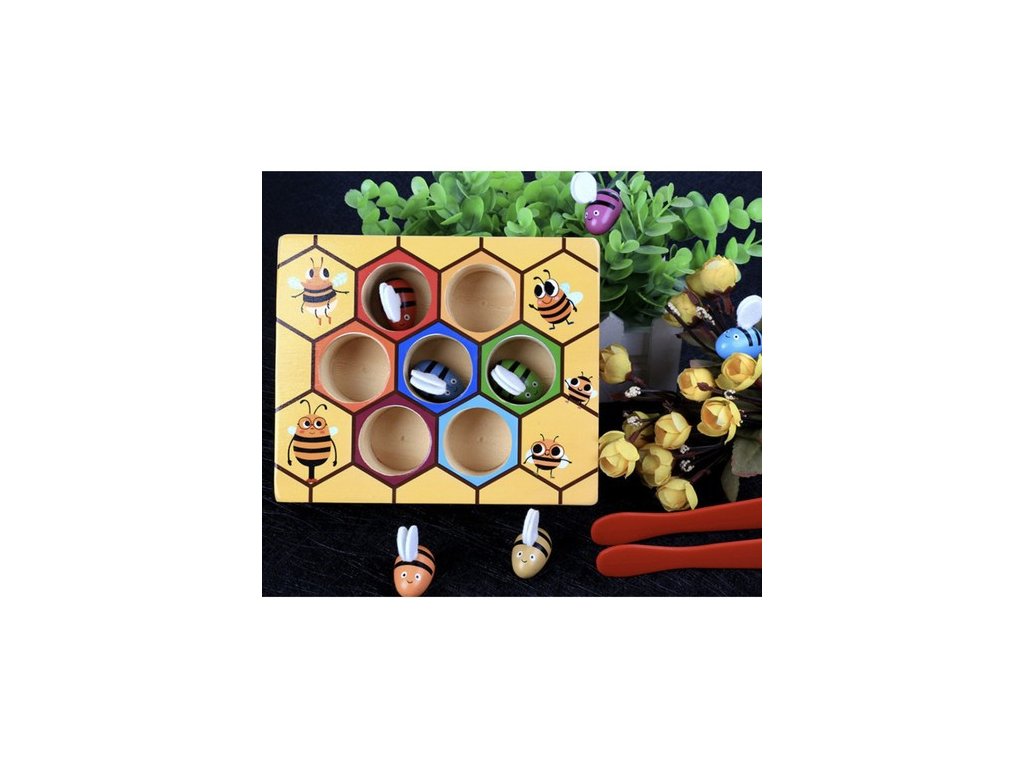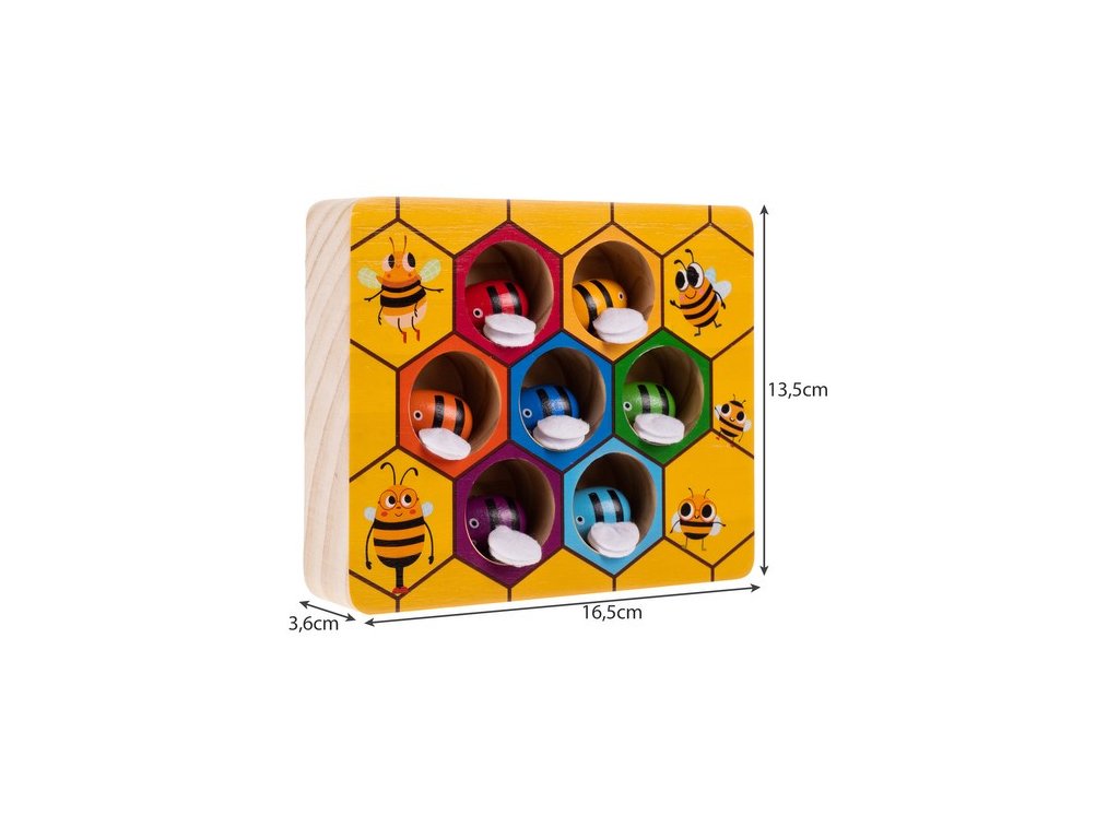 Dítě se nejlépe učí hrou. Dřevěná hra Chyť včelku nepochybně vykouzlí úsměv na tváři vašeho dítěte a pomůže mimo jiné rozvíjet: motorické (pohybové) a zrakové dovednosti. Sada obsahuje plást, včelky a pinzetu. Jejich originální tvar dělá hru zajímavou.