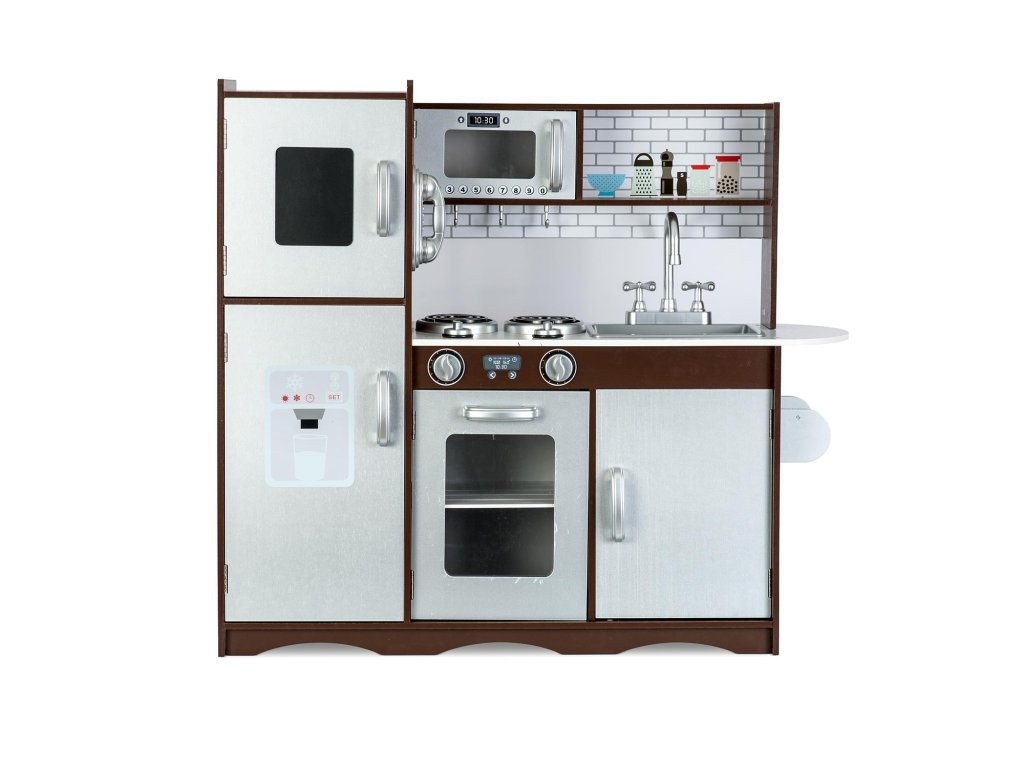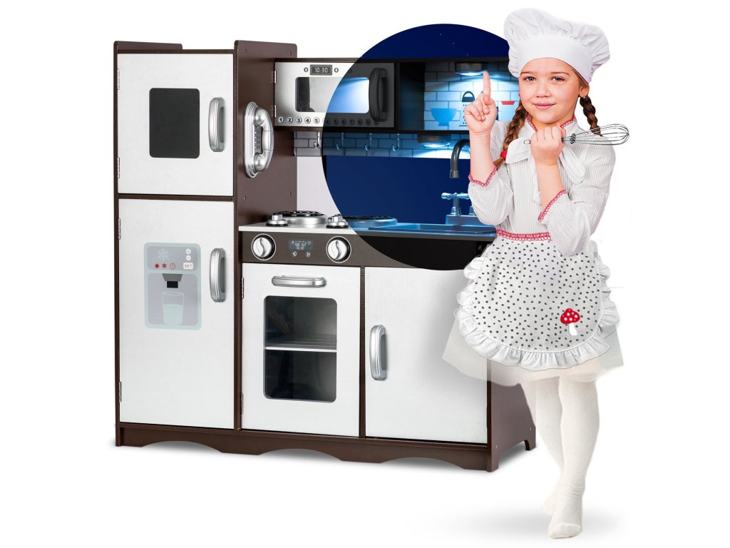 Tato kuchyňka není jen královnou her, ale také dekorací, která skvěle zapadne do jakéhokoliv dětského pokoje. Robustní dřevěná konstrukce zajišťuje dlouhou životnost, zatímco moderní funkce, jako je osvětlení a možnost využití tabule k vytvoření jídelního lístku, posouvají hranice představivosti. Připravte se na spoustu radosti a smíchu, kdy děti napodobují dospělé, poznávají nové recepty a rozvíjejí své manuální dovednosti.