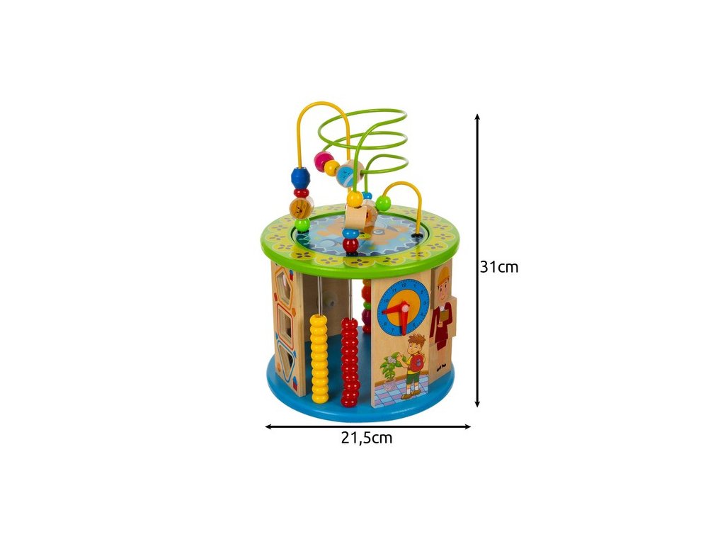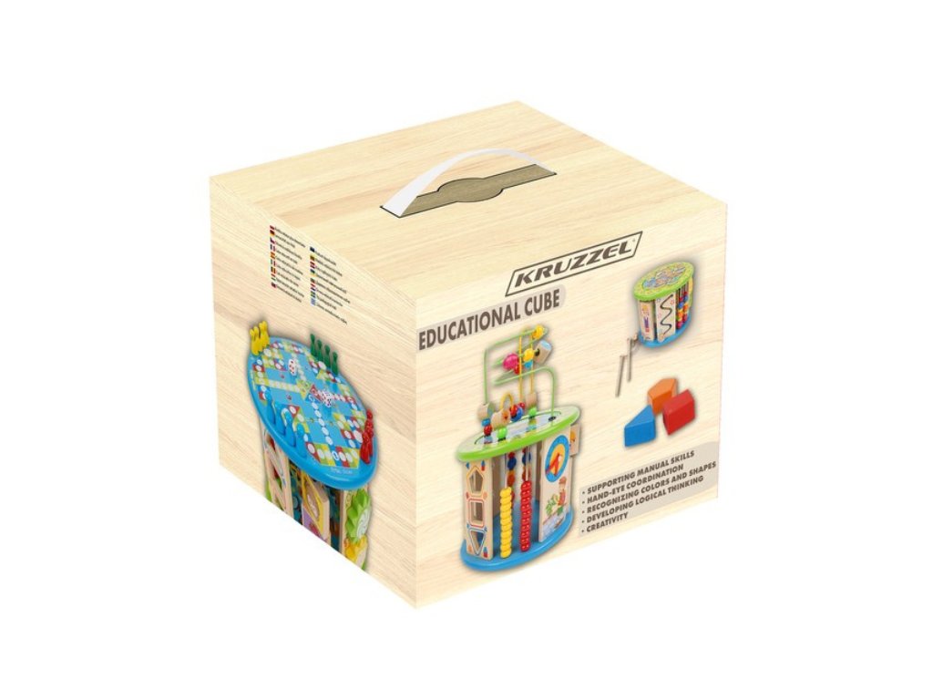Každá strana kostky, její horní a spodní část, nabízí jinou aktivitu, rozvíjí manuální zručnost, logické myšlení, rozpoznávání barev a tvarů a také koordinaci ruka-oko.
