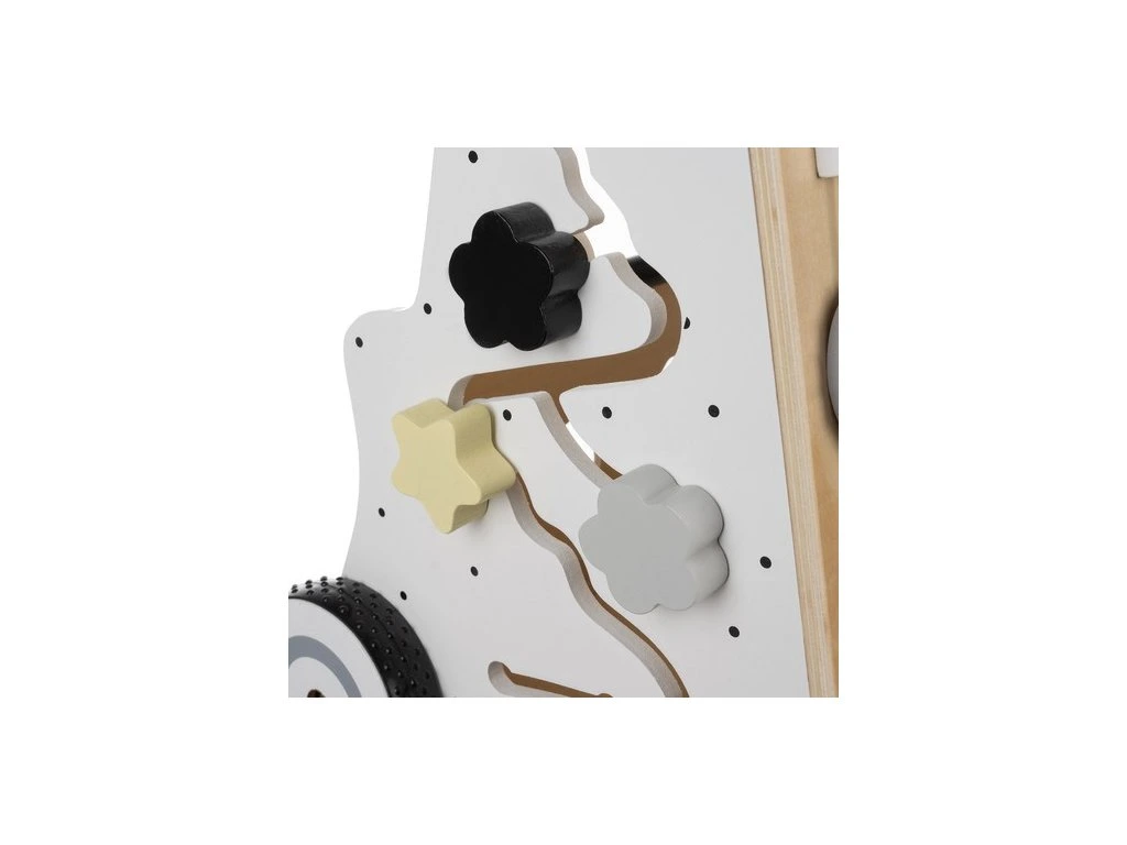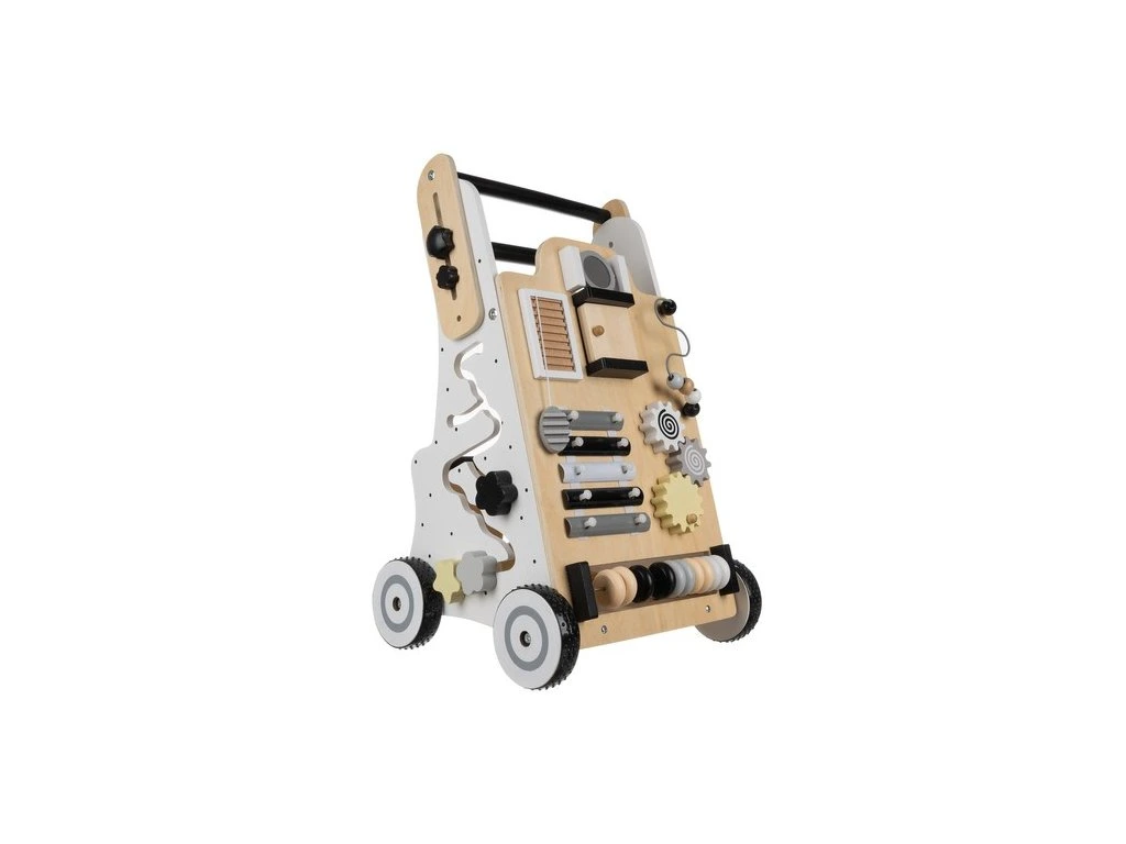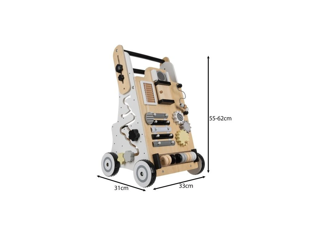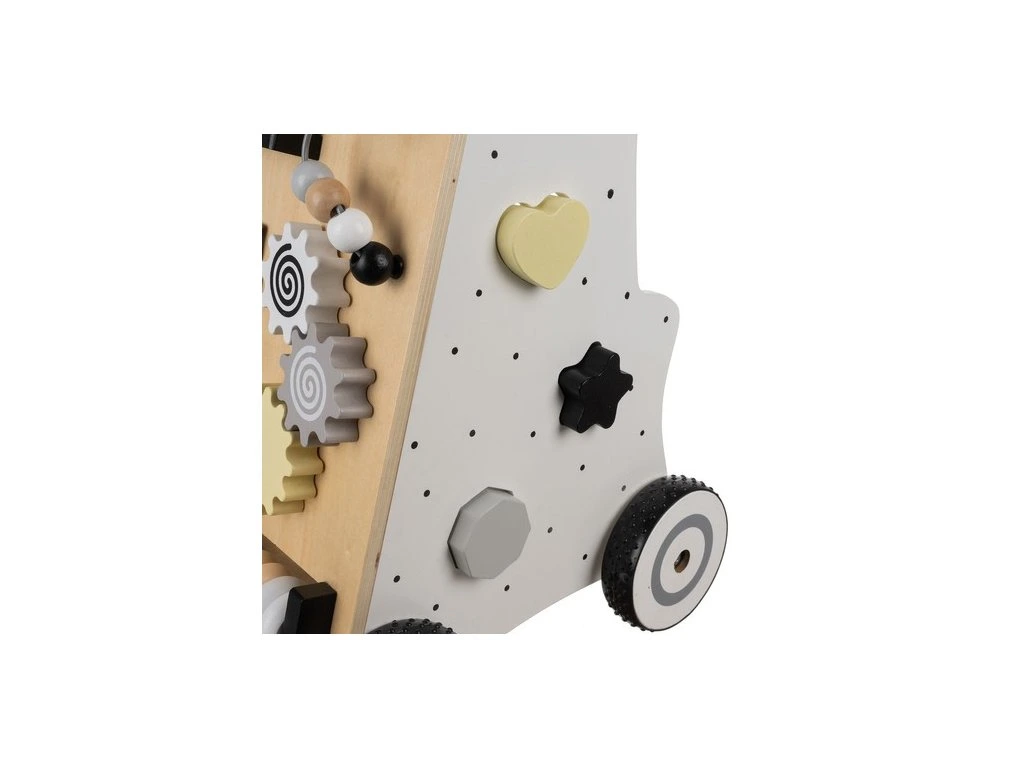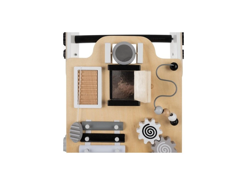 manipulační deska - odstrkovadlo je vybaveno multifunkční manipulační deskou, která obsahuje: činely, počítadlo, bludiště, pohyblivé koule, kolečka, zrcadlo, otevírací dvířka a tvarové puzzle, každá stěna nabízí jinou aktivitu, která poskytuje dlouhé hodiny zábavy a podporuje rozvoj schopností dítěte