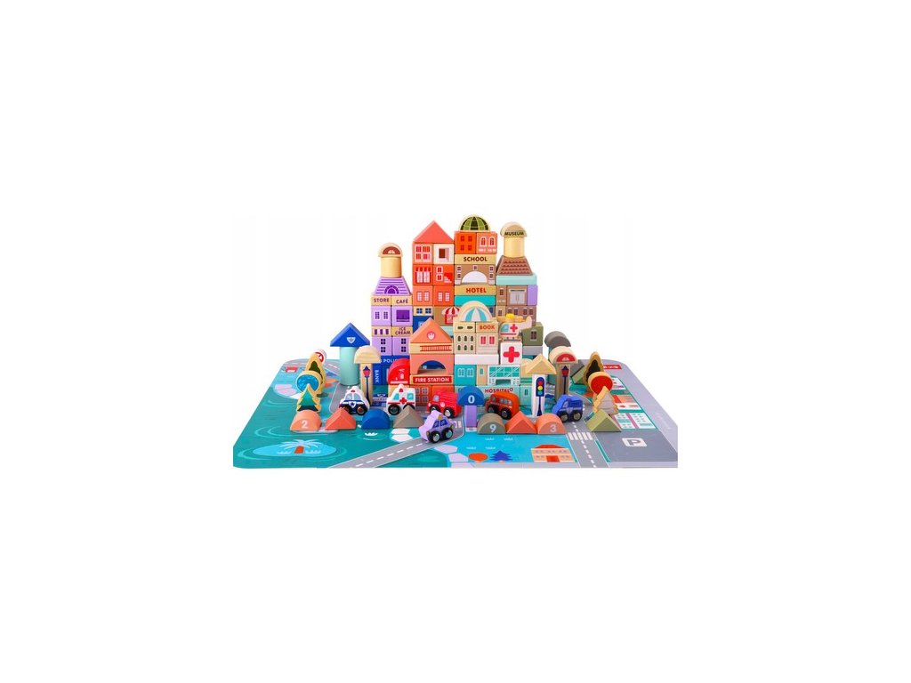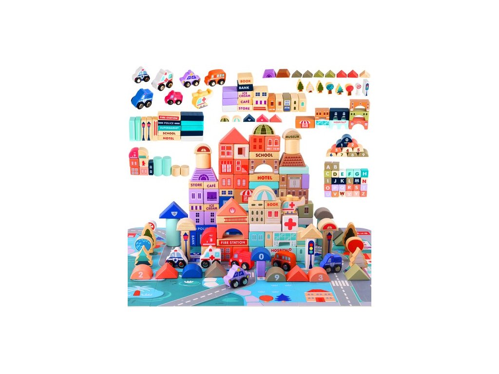 DŘEVĚNÉ BLOKOVÁNÍ MĚSTO - 115 BLOKŮ + MAT