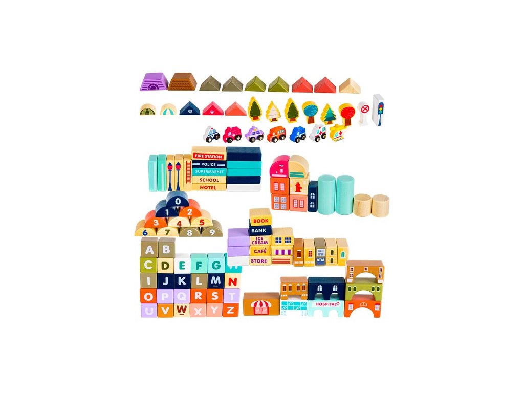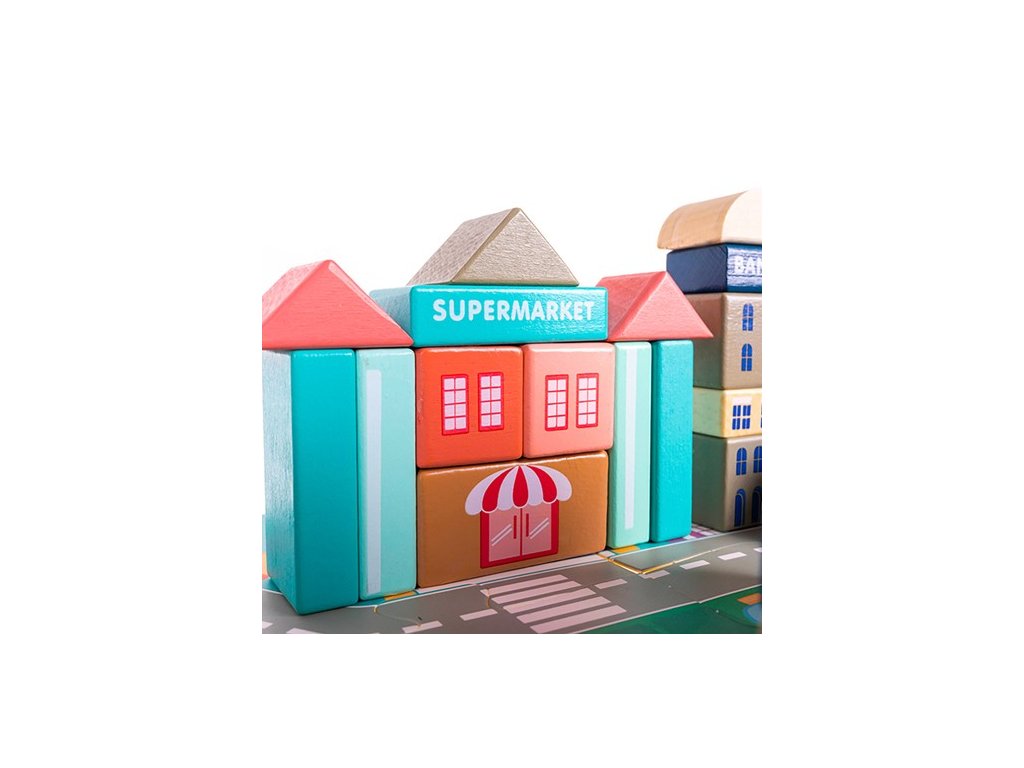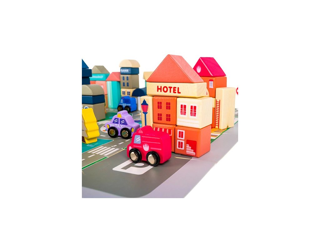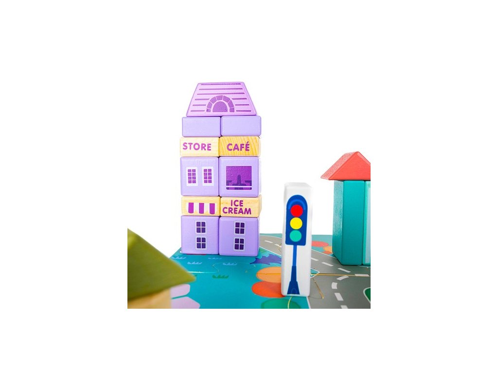 - KREATIVNÍ A ŠŤASTNÁ ZÁBAVA – díky rozmanitosti kostek mohou děti stavět různé městské stavby, vytváření vlastních plánů města . Mohou plánovat a navrhovat ulice, stavět budovy a zařizovat prostor podle vlastních představ.