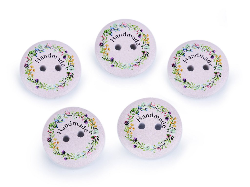 Dřevěné dekorační knoflíky s nápisem "Handmade" vyniknou na ručních výrobcích, dárcích a různých dekoracích. Můžete je použít také ve scrapbookingu.