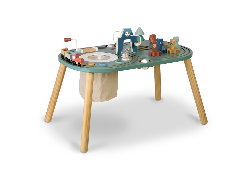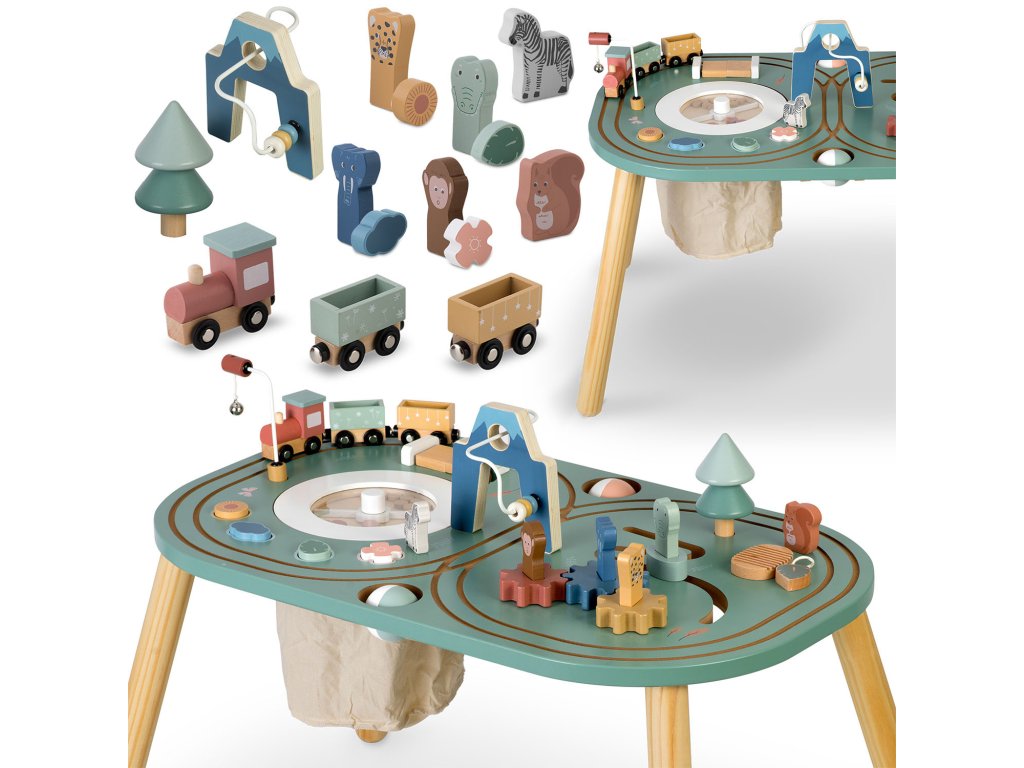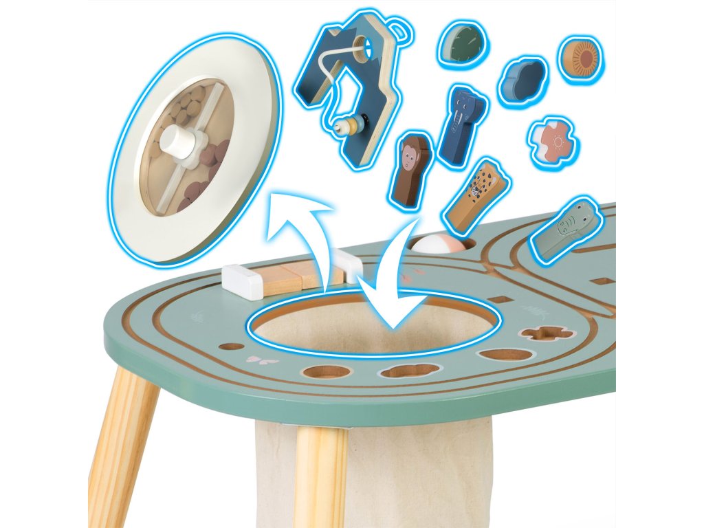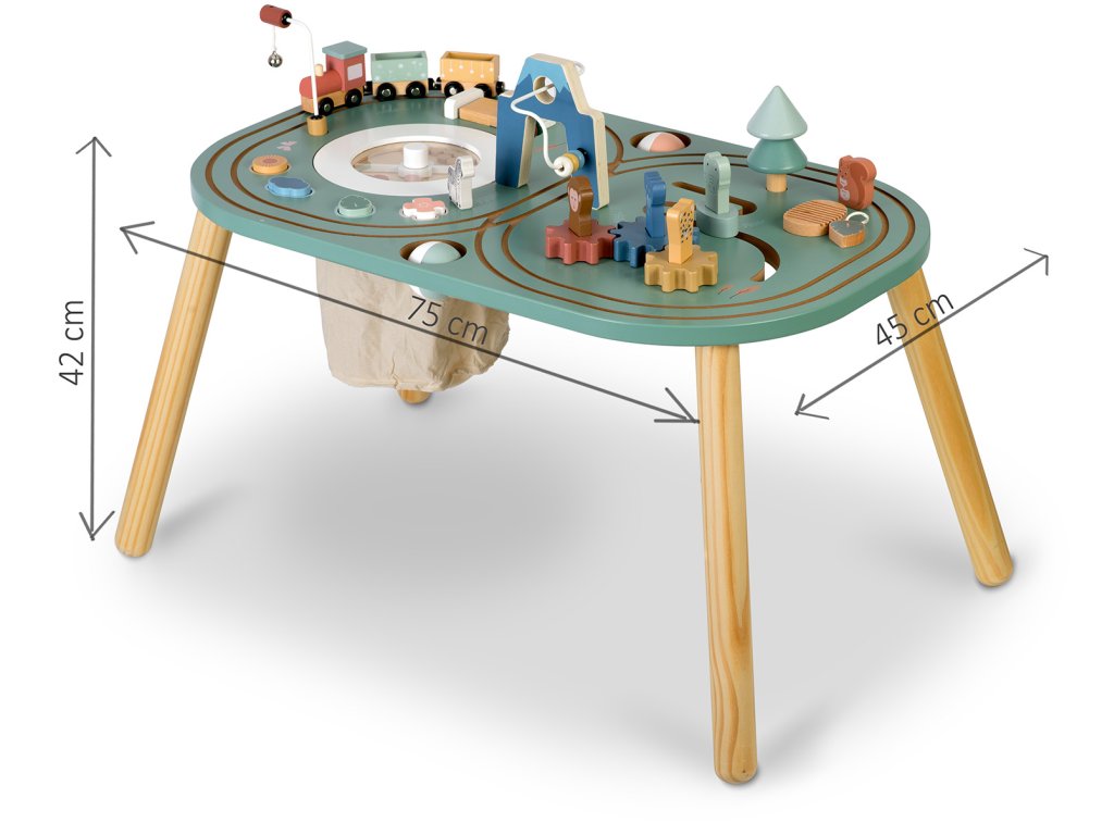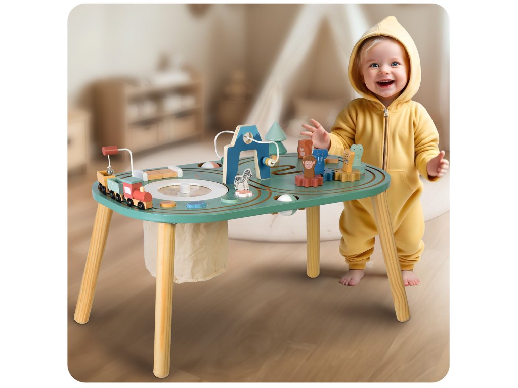 Dřevěný senzorický stolek Nukido: NK-865 Krásná dřevěná hračka na dlouhá léta. Přírodní dřevo natřené bezpečnou barvou ⭐ Rozvoj motoriky: Podporuje hru a zkoumání, rozvíjí motoriku dítěte.