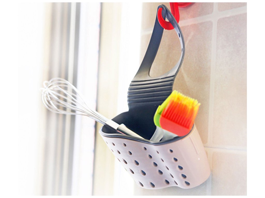 Lze v něm uložit houbičky, drátěnky, kartáče a další kuchyňské nebo koupelnové doplňky. Díky otvorům se voda nahromaděná v nádobě odvede do dřezu.