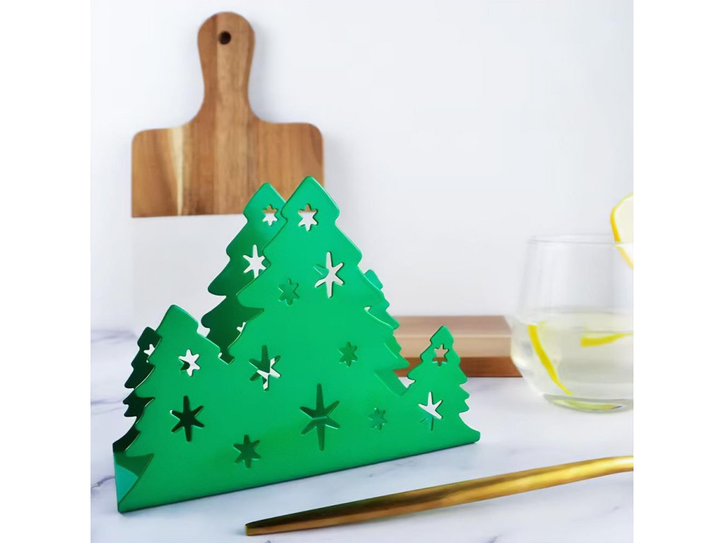 Kovový držák na ubrousky s motivem vánočního stromku je vynikající volbou pro všechny, kteří touží po dokonalé atmosféře během svátečních stolování. Tento stylový a praktický doplněk zaručuje, že ubrousky budou vždy uspořádané a snadno dostupné. Navíc přidává na eleganci každého stolu a skvěle ladí s vánočním dekorováním. Každý detail designu, jako jsou hvězdičky, umocňuje kouzlo Vánoc a navozuje příjemnou atmosféru pro vaše rodinné setkání nebo oslavy s přáteli.