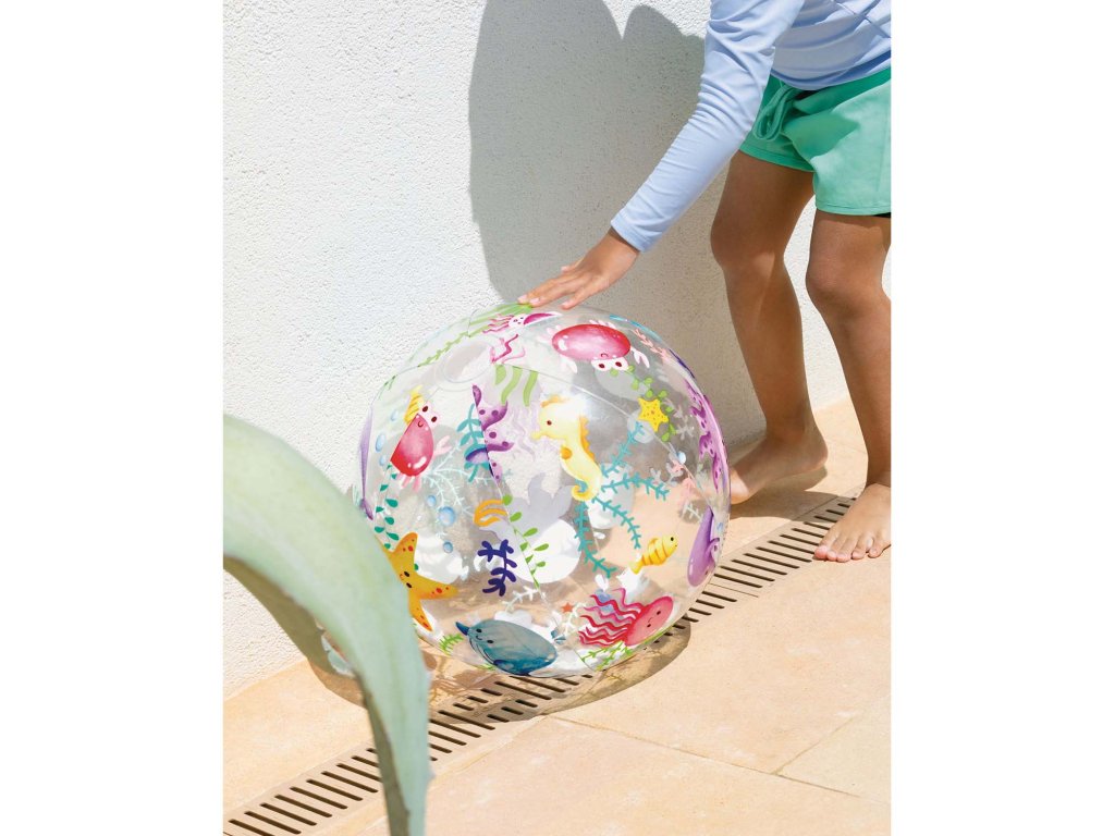 S naší jedinečnou nafukovací míčkou s motivem podvodního světa! Je to ideální společník pro hru na pláži, u bazénu nebo na zahradě. Díky svým svěžím barvám a veselému designu vás nejen potěší, ale také dodá energii každé letní aktivitě. Ukažte svým dětem, jaké je to mít neomezenou zábavu pod slunečními paprsky!