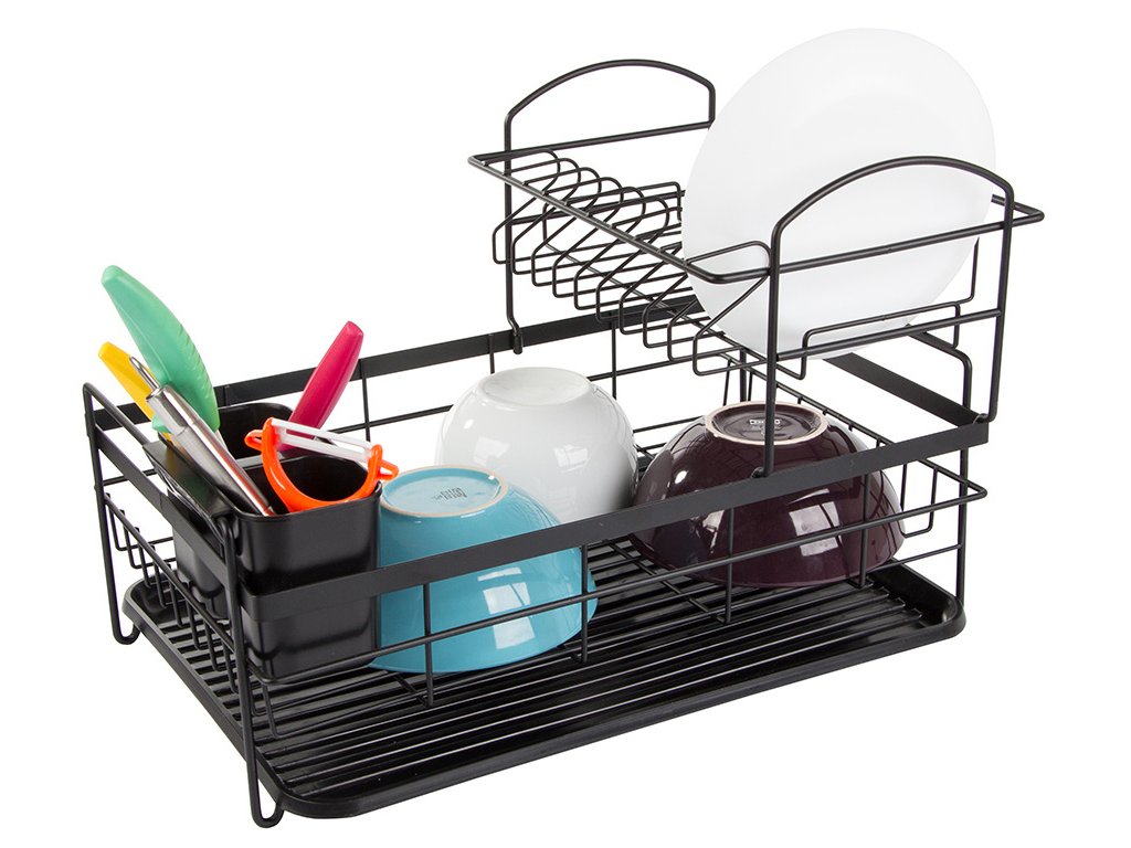 Kuchyňský sušák je vyroben z vysoce kvalitního kovu s práškovým nástřikem. Je odolný proti poškození a působení vlhkosti vznikající při skladování mokrého nádobí.