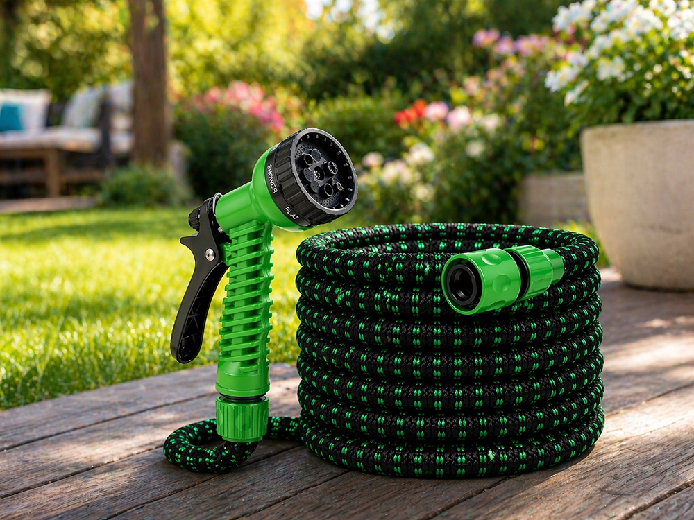 Hadice je vyrobena z vysoce kvalitních pružných materiálů, které umožňují její dynamické prodloužení během používání. Pod vlivem vody se její délka zvětší až několikanásobně, což umožňuje volné manévrování a dosah do každého koutu zahrady bez nutnosti přenášení zdroje vody. Po uzavření kohoutku se hadice automaticky smrští, díky čemuž zabírá velmi málo místa a snadno se skladuje i v malých prostorech, jako je balkon, garáž nebo komora. Konstrukce navíc zabraňuje kroucení a zalomení, což výrazně prodlužuje její životnost.