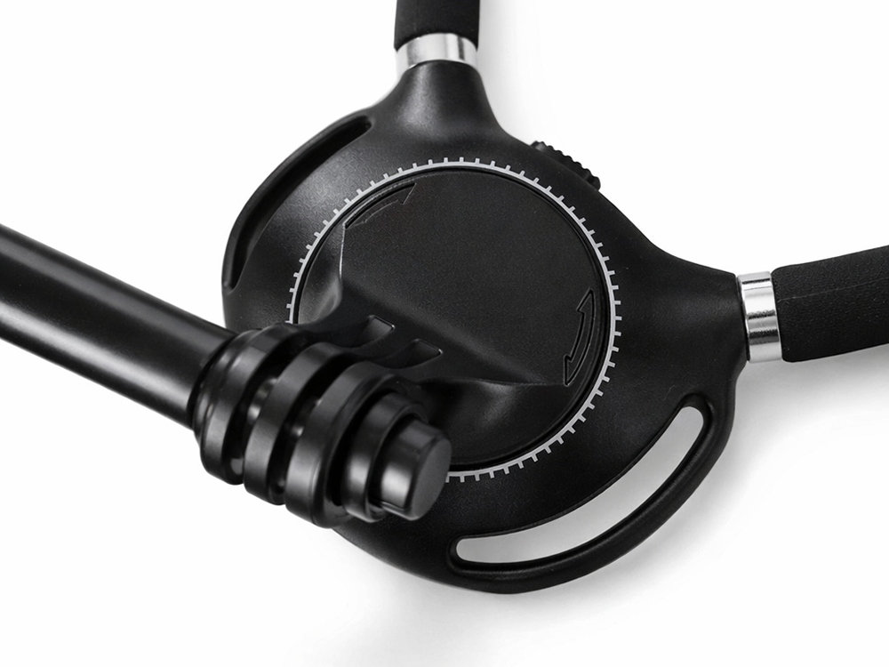 Otočná hlava s držákem kompatibilním s akčními kamerami typu GoPro a dalšími kamerami s podobným upevňovacím systémem nebo s telefony s přídavným adaptérem.