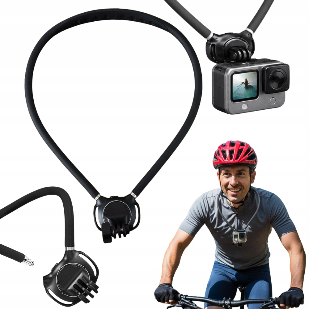 ✅ Praktický držák na krk určený pro různá zařízení, mimo jiné pro sportovní kamery a mobilní telefony, umožňuje natáčet dynamické záběry z přirozené perspektivy uživatele.