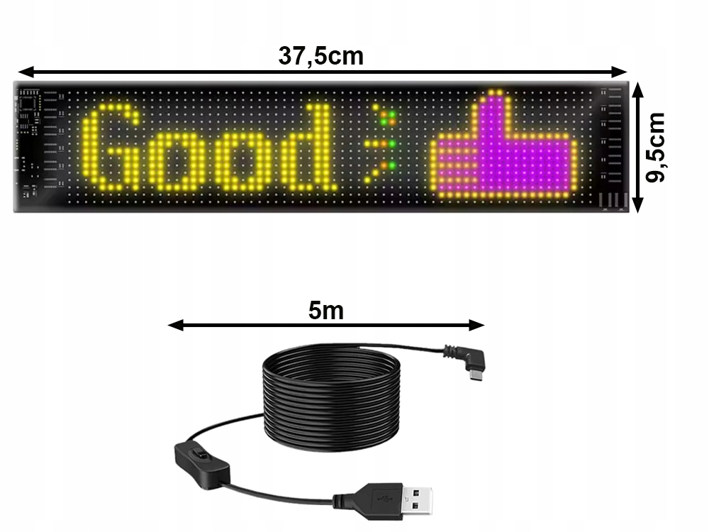 Moderní LED panel 16×64 je efektní displej, který umožňuje prezentovat vlastní zprávy, nápisy a animace. Díky ovládání pomocí aplikace v telefonu nebo dálkového ovladače můžete snadno měnit obsah zobrazený na panelu a přizpůsobit jej svým potřebám. Displej se ideálně hodí jako reklama, informační zpráva nebo dekorativní prvek osvětlení.