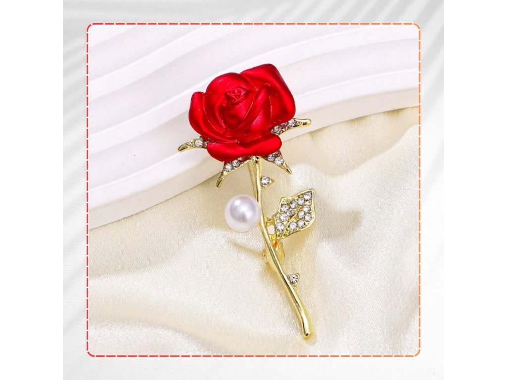 Objevte výjimečný půvab a romantismus s naší elegantní broskou s červenou růží, která je subtilně zdobena lesklými cyrkoniemi a jemnou perličkou. Tato krásná broská je ideálním doplňkem, který dodá klasiku a eleganci každému outfitu – od večerní šaty, přes stylový sakó, až po módní čepici, kabelku nebo plášť. Hlavním prvkem brosky je elegantní červená růže, symbolizující lásku a vášeň. Dáváte-li přednost brosce na každodenní nošení nebo na speciální příležitosti, tato broska jistě dodá vašim stylizacím nádech elegance a romantického kouzla.