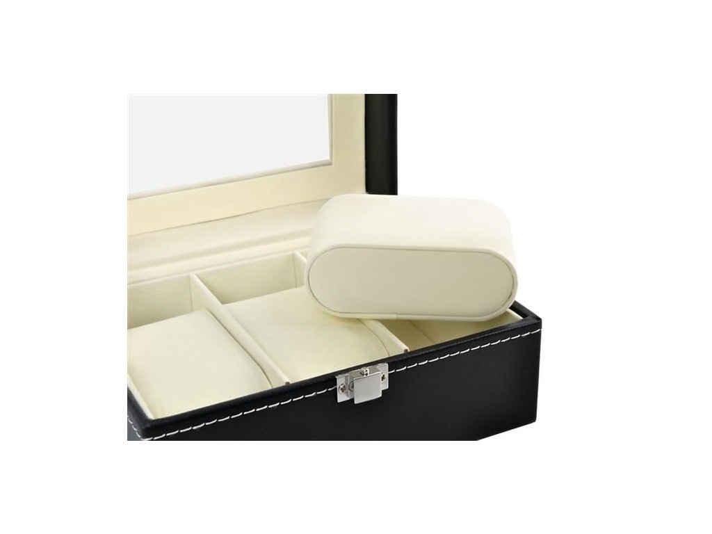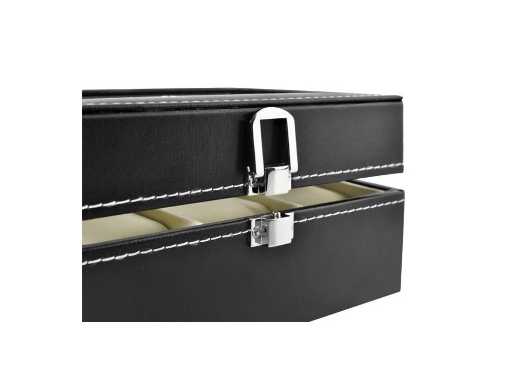 - ESTETICKÉ A ELEGANTNÍ – pouzdro Vyrobeno s důrazem na detail, vypadá krásně a skvěle zobrazuje svůj obsah. Výrobek je vyroben z černé ekokůže s bílým lemováním a světlým, dokonale kontrastním interiérem. Víko pouzdra hodinek je průhledné, a tak lze krabičku hodinek využít nejen k uložení, ale také k elegantnímu vystavení obsahu.