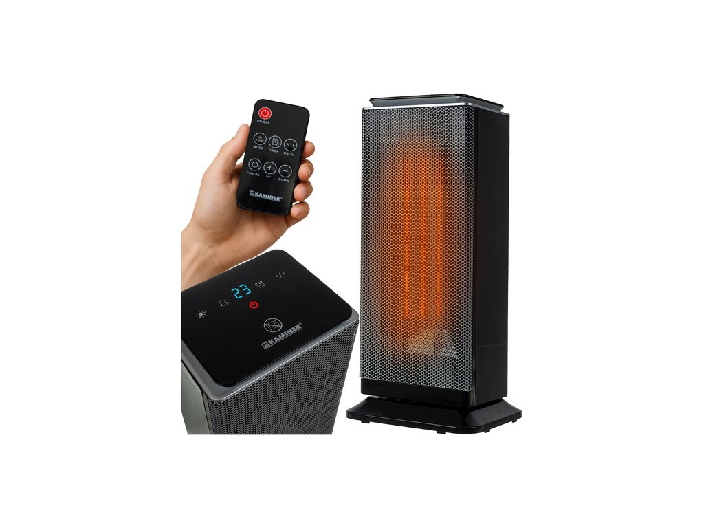 - moderní vertikální PTC ohřívač – rychlé a rovnoměrné vytápění, tichý provoz a minimalistický design