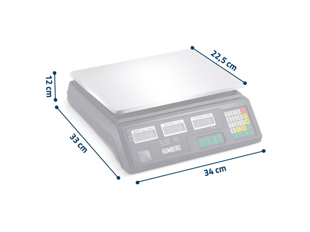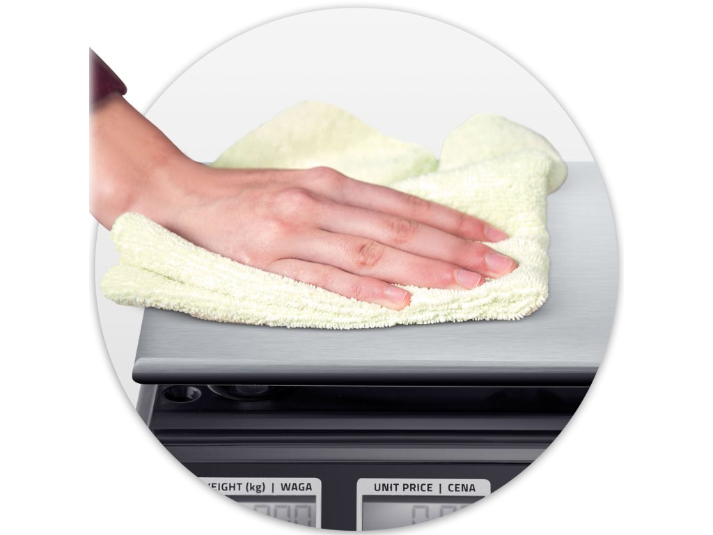 HM-190 přichází s řadou funkcí, které vám usnadní práci. Využívejte až 6 velkých podsvícených LCD displejů pro snadné čtení hodnot z obou stran a paměť pro poslední měření. Díky funkci AUTO ON/OFF šetří energii, zatímco nerezová pánev zaručuje rychlé čištění a odolnost vůči chemikáliím, což zajišťuje bezpečnost v kontaktu s potravinami. Užívejte si efektivní a hygienické vážení s posláním splních moderních ekologických standardů.