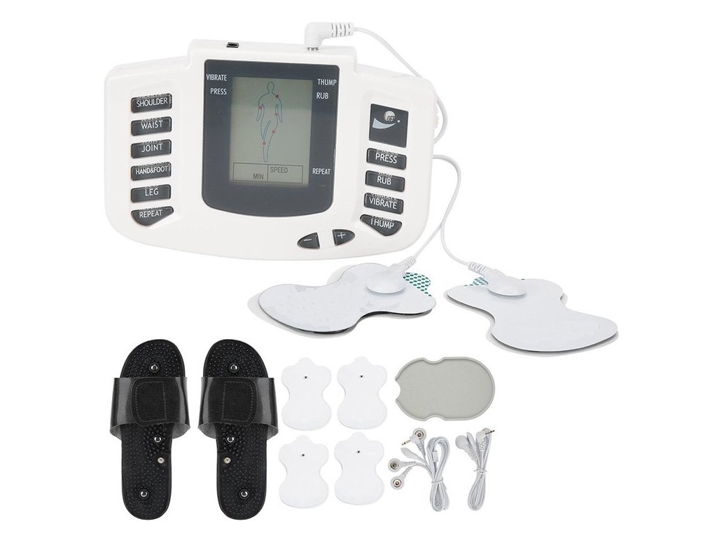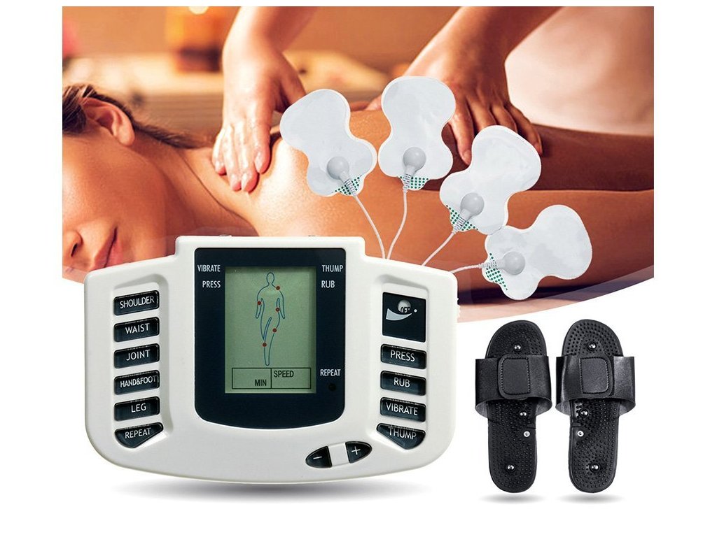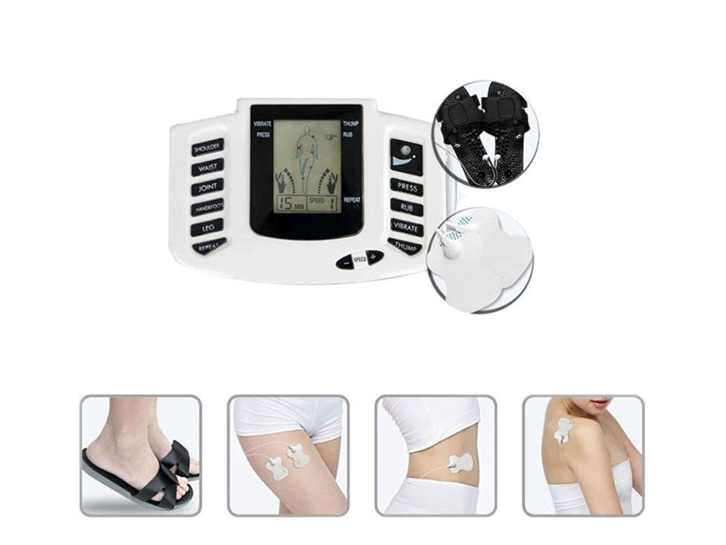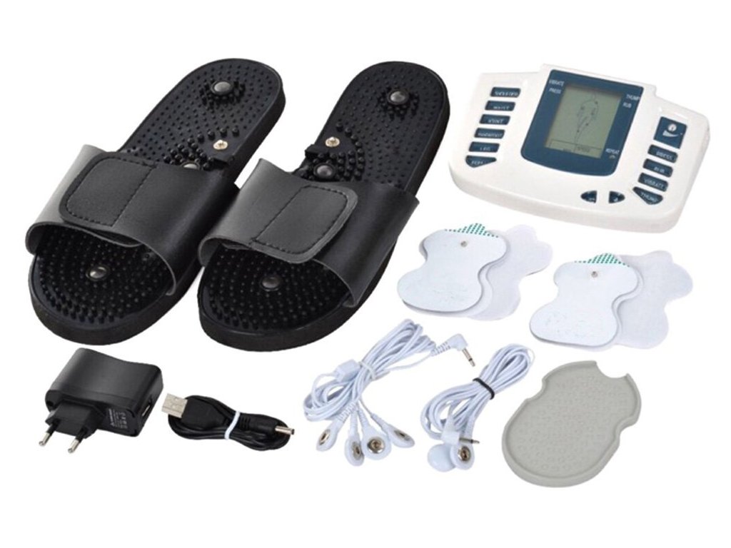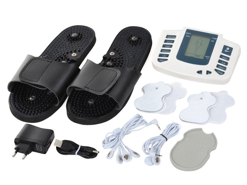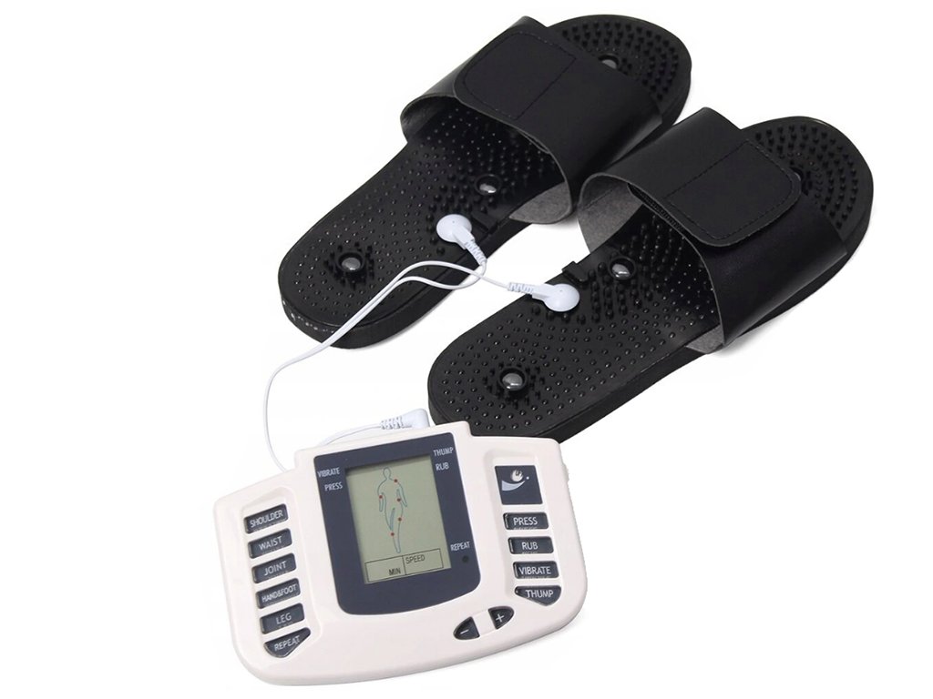 Součástí sady je pár žabek, které fungují jako elektrody pro chodidla, takže unavená chodidla lze po vyčerpávajícím pracovním dni masírovat.