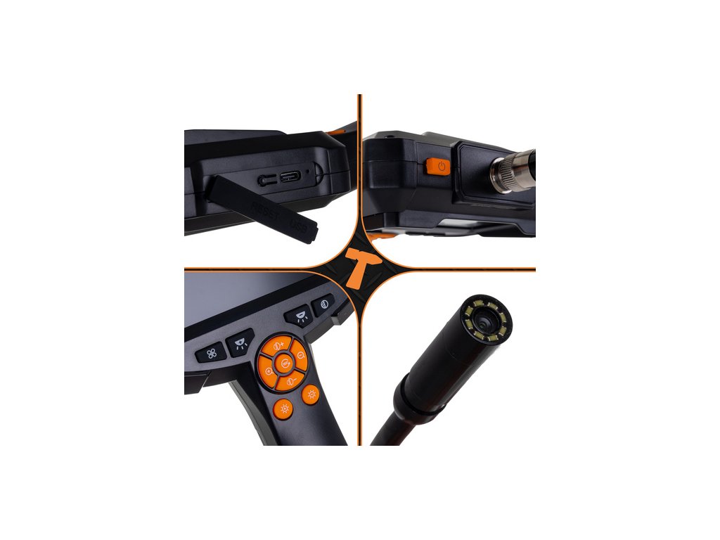 - plná nezávislost - endoskop funguje bezdrátově , má vestavěný 4,2" IPS displej, baterii s kapacitou 2000 mAh (3,5 hodiny provozu) a nabíjení přes USB-C, připraven k okamžitému použití, Je to perfektní řešení, když je důležité pohodlí, mobilita a připravenost jednat za jakýchkoli podmínek.