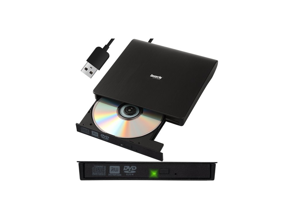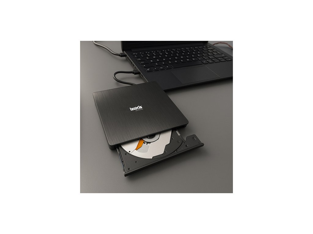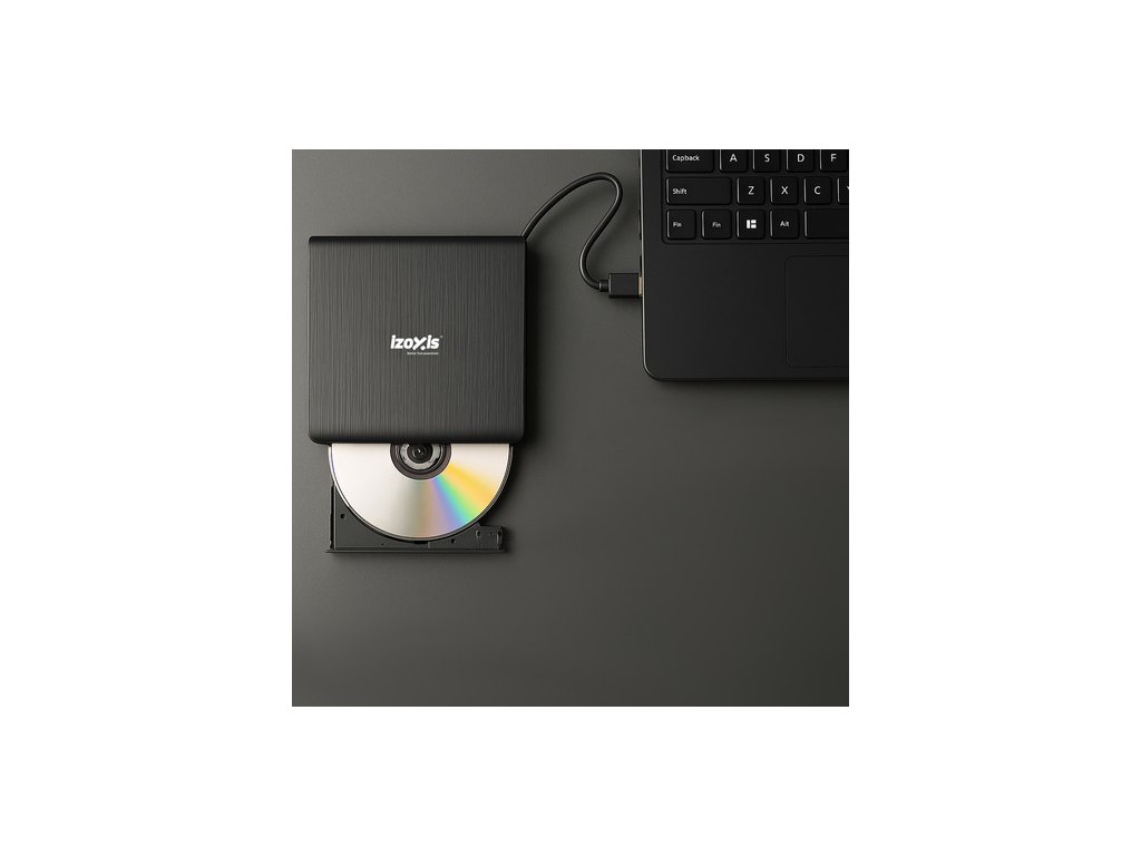 připraveno k použití ihned po připojení - Hledáte jednoduché a spolehlivé řešení, které vám umožní číst a vypalovat CD a DVD? externí DVD mechanika IZOXIS pracuje v režimu Plug and Play , takže není třeba instalovat žádné ovladače – stačí jen plug and play! Plně kompatibilní s Windows 7/8/10/11 , Mac OS a také Linux .
