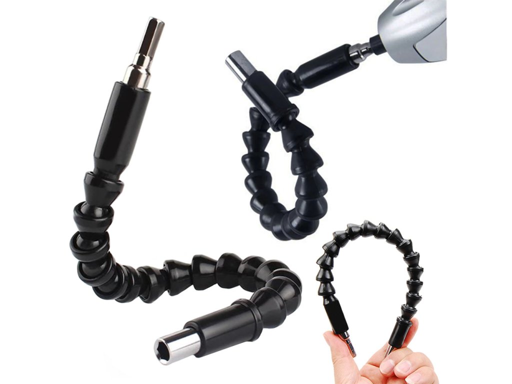 Pružný nástavec na bity je nepostradatelný nástroj pro utahování šroubů a vrutů v těžko přístupných místech pro váš šroubovák nebo vrtačku. Prodlužovací nástavec je ohebný, takže jej můžete libovolně ohýbat, abyste bit umístili na správné místo.
