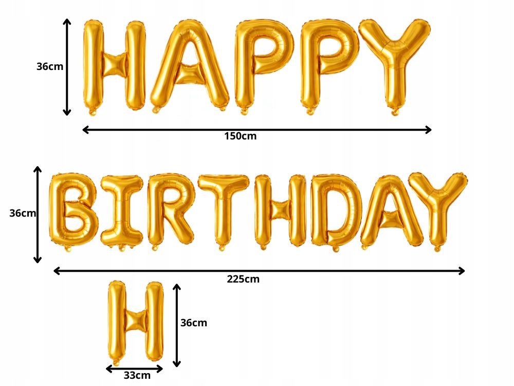 ✅ Délka nápisu BIRTHDAY po sestavení: cca 225 cm