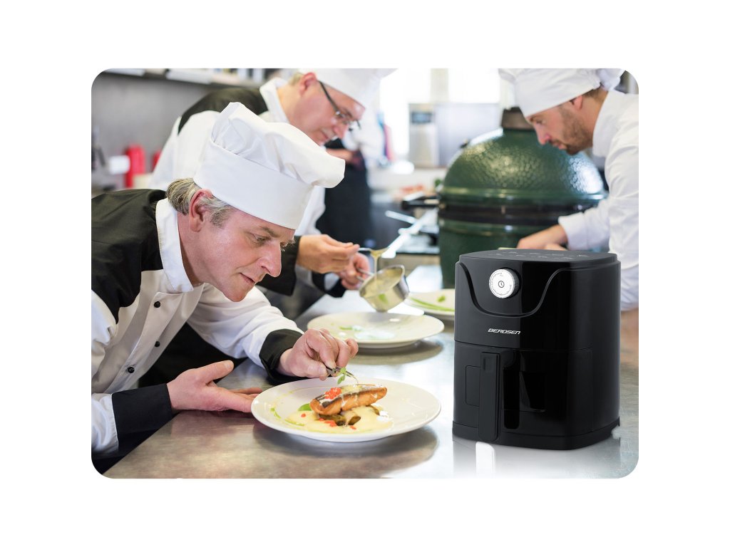 Hlavní vlastnosti: pro pečení: hranolky, maso, ryby, zeleninu, koláče a sušenky, velmi jednoduchá obsluha a snadné čištění, energeticky úsporná, optimalizovaný poměr výkonu a tepla, rychle se zahřívá, splňuje všechny bezpečnostní normy, certifikáty CE, GS, LFGB, ROHS, které potvrzují, že fritéza je spolehlivý a bezpečný elektrický spotřebič pro styk s potravinami a neobsahuje škodlivé látky, má rukojeť, která se nezahřívá, a koš z nerezové oceli s nepřilnavým povrchem PTFE, který vytváří nepřilnavý povrch.