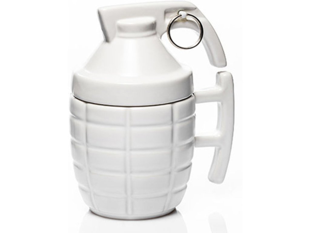 Tento jedinečný granátový hrnek s víčkem v bílé barvě je unikátní dárek pro pořádné chlapy. Potěšte svého partnera, nebo tatínka a věnujte mu k narozeninám tento stylový hrnek ve tvaru granátu. Jen s tímto hrnkem můžete při každém popíjení kávy či čaje cítit tu příjemnou výbušnou chuť. Granátová hrnek s víčkem - bílý je krásný a originální dárek pro muže.