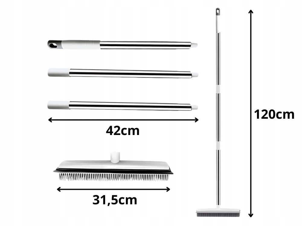 Moderní kartáč s pružnými gumovými štětinami je praktickým nástrojem pro úklid všech typů povrchů. Skvěle si poradí s prachem, vlasy, chlupy a drobnými nečistotami – jak na tvrdých podlahách, tak na kobercích. Antistatická guma přitahuje nečistoty jako magnet.
