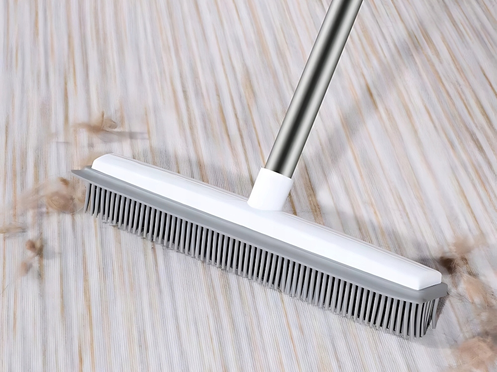 Gumové štětiny si skvěle poradí s odstraňováním chlupů domácích mazlíčků z podlahových panelů, dlaždic, koberců a koberečků. Kartáč se osvědčí v domácnostech s psy nebo kočkami – rychle a důkladně se zbavíte chuchvalců z podlahy bez použití vysavače.