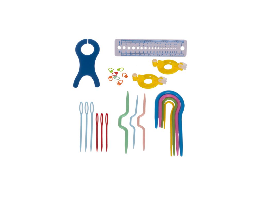vhodné i pro začátečníky - jedná se o univerzální sadu pro začátečníky i pokročilé uživatele, ve které najdete vše, co potřebujete k nastartování nebo rozvoji své vášně, 21 háčků o velikosti od 0,6 do 6,0 mm, fixy na očka, pletací jehlice, 5 klubíček příze, držáky na očka, nástroje na bambulky, krejčovský metr, řezačky a další příslušenství vám umožní volně realizovat různé projekty – od tenkých krajek po husté tkaniny