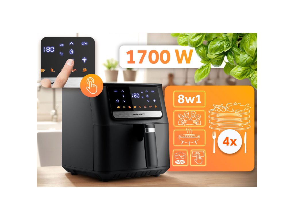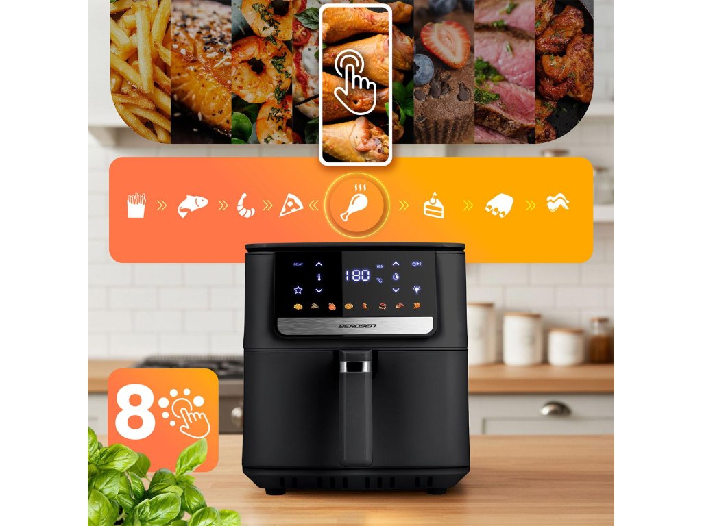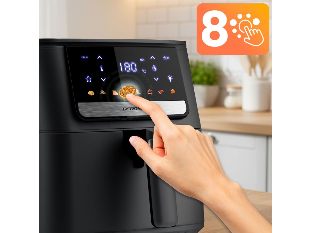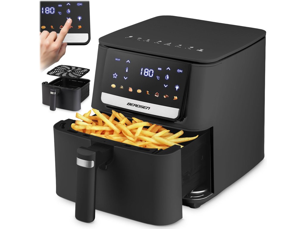 Zjednodušte si vaření a ušetřete čas. Tato multifunkční fritéza s objemem 6,5 litru je ideálním řešením pro celou rodinu, navíc nahrazuje troubu, gril, toustovač i sušičku potravin. Ovládání je díky dotykové obrazovce naprosto intuitivní a díky 8 přednastaveným programům připravíte svá oblíbená jídla pouhým kliknutím. Vsaďte na Berdsen a užívejte si rychlé, chutné a zdravé jídlo každý den.