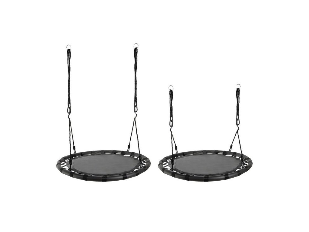 ? VELKÝ SEDÁK - houpačka má široký, kulatý sedák z železného rámu, použitý materiál polyester + nylon + EVA . Nosnost až 150 kg je možná díky použití pletených lan o tloušťce 10 mm. To zaručuje bezpečnost a umožňuje i dospělým prožít chvíle radosti. Je to ideální řešení pro velkou rodinu. Svou velikostí a tvarem je vhodný pro více osob.