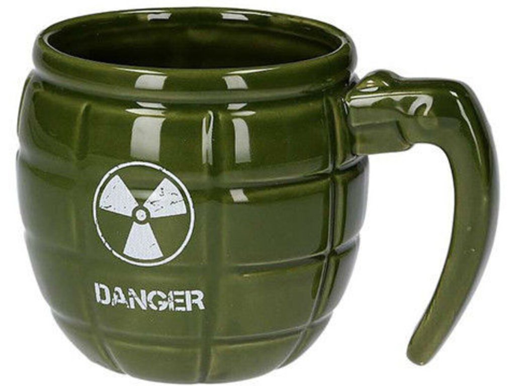 Každý muž již může mít svůj granát aniž by porušoval nějaké zákony. Hrnek ve tvaru granátu - zelený je originální hrneček, který nesmí chybět v žádné kuchyni. Hrnek ve tvaru granátu - zelený vypadá jako opravdový granát. Na přední straně granátu je vyražený symbol a číslo šarže. Hrnek ve tvaru granátu - zelený je vyroben z porcelánu. Pořiďte tento originální hrneček svému partnerovi třeba k narozeninám a vykouzlete mu úsměv na tváři.