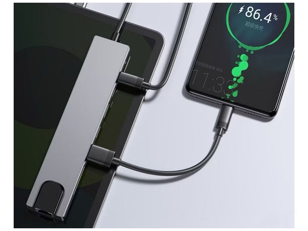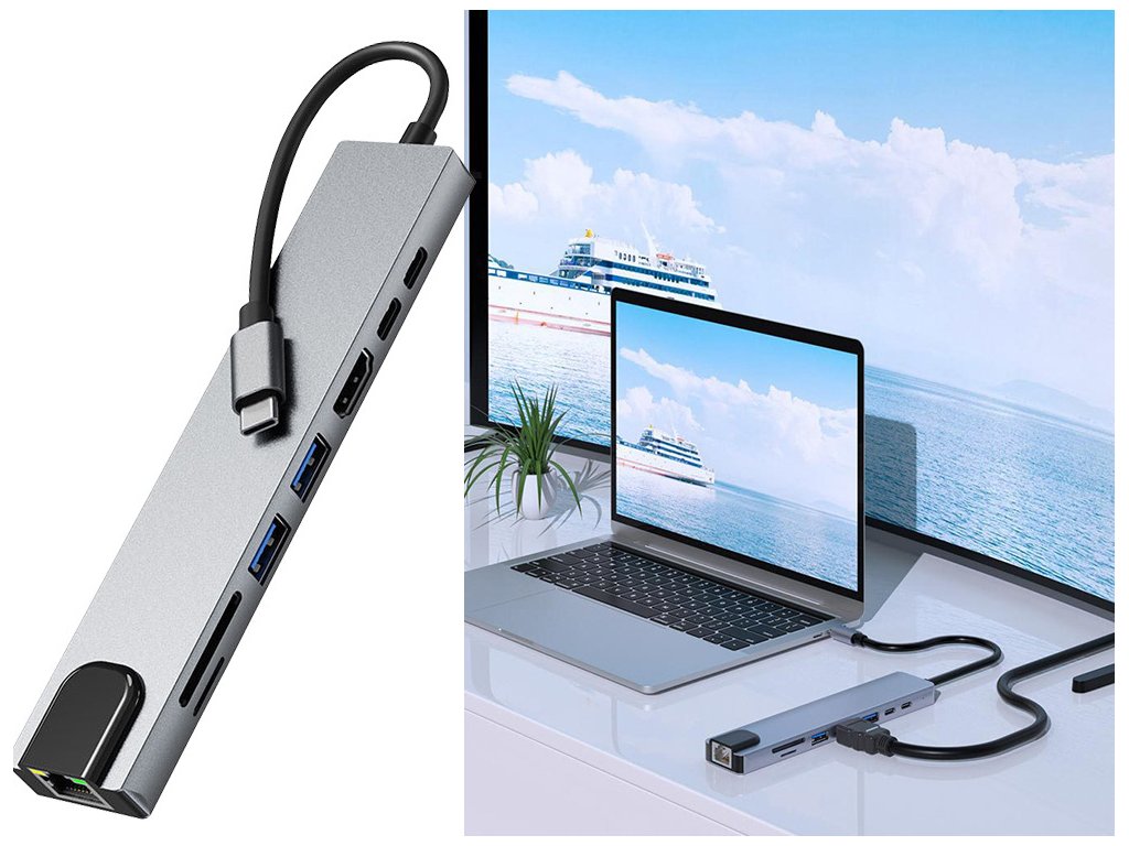 Představte modernost a funkčnost v jednom zařízení! Náš 8v1 USB-C HUB je dokonalým řešením pro ty, kteří potřebují rozšířit možnosti svého notebooku, tabletu nebo chytrého telefonu s portem USB-C. Elegantní kovové provedení zajišťuje odolnost a moderní vzhled, který dokonale zapadne na každý pracovní stůl nebo do domácí kanceláře.