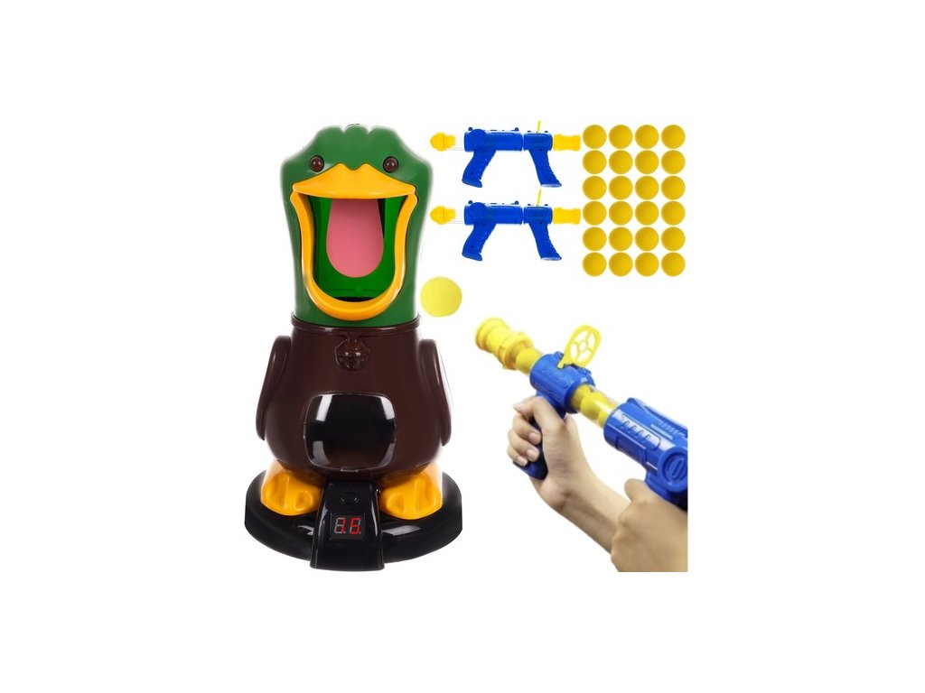 Fantastická arkádová hra se střelbou na terč je dokonalou hračkou pro milovníky míčových zbraní. Sada obsahuje: kachnu, 2 kulové pistole a 24 kuliček.