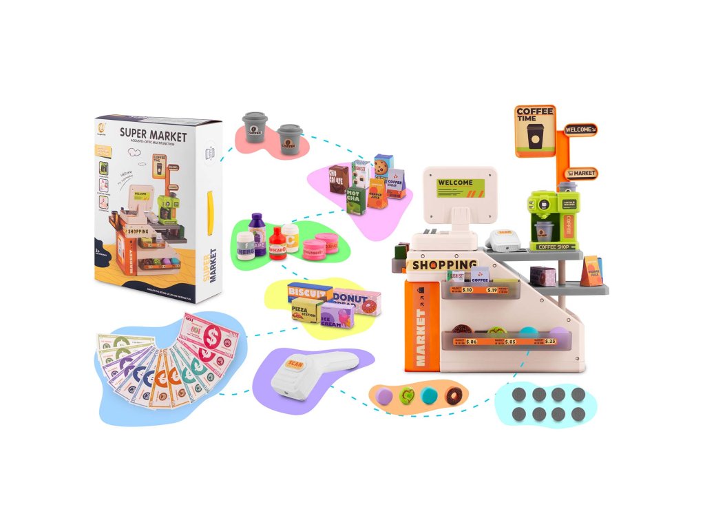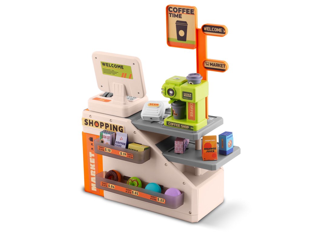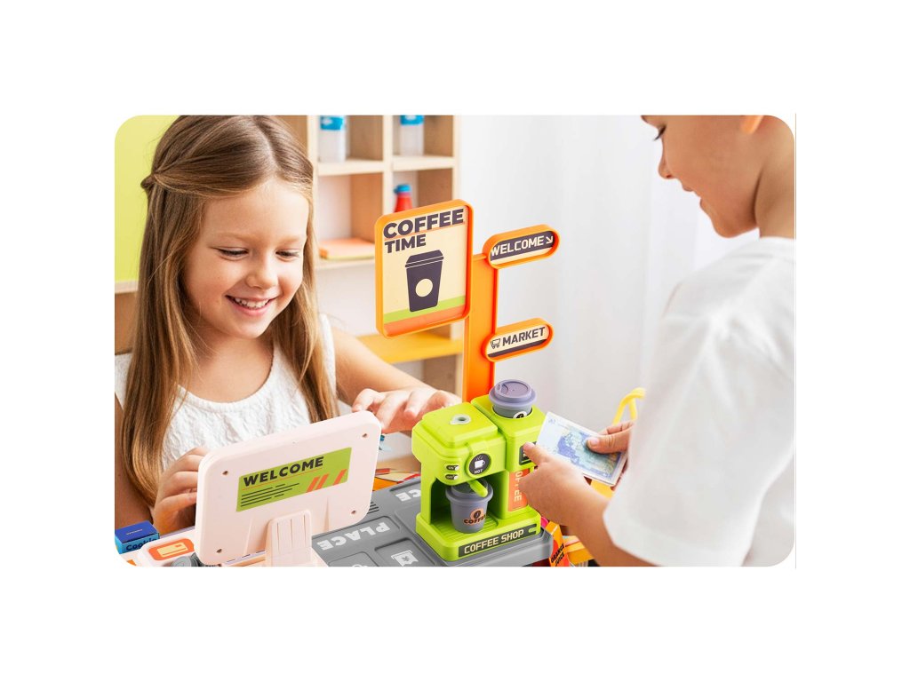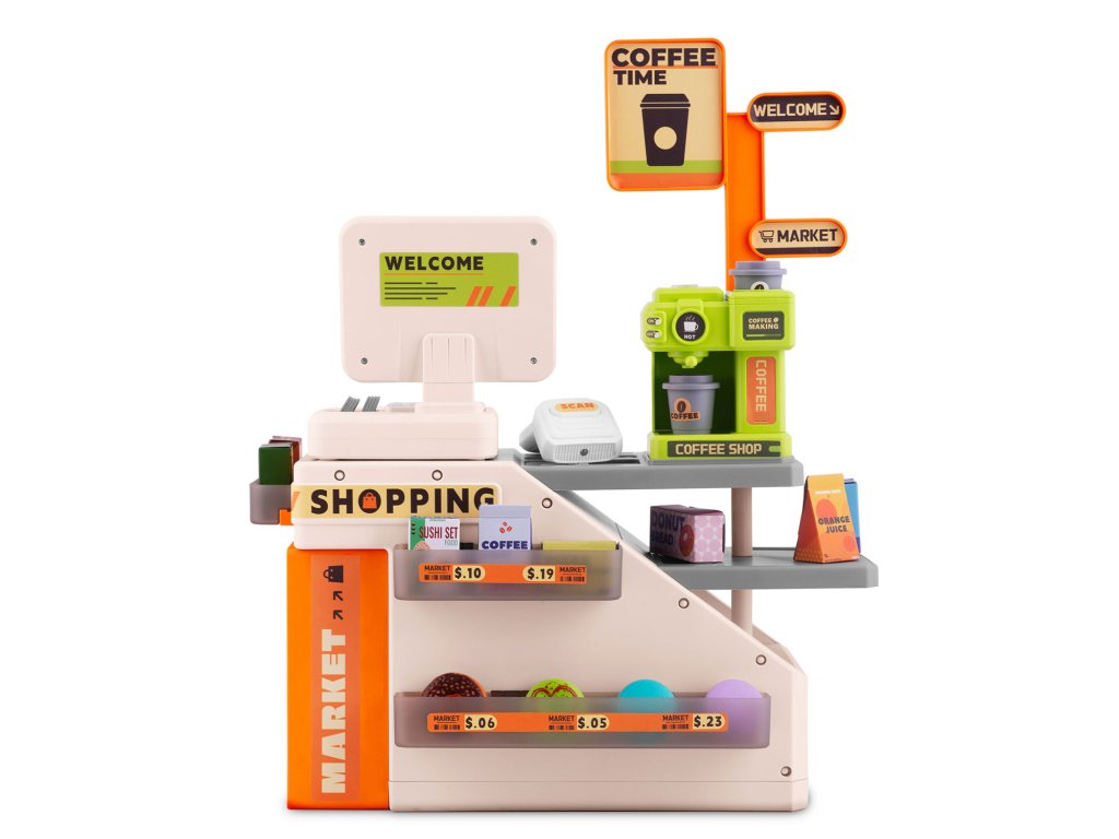 Tato kouzelná pokladna je snem každého malého obchodníka a poskytuje realistický zážitek, který podporuje praktické učení. Kávovar připravuje skutečnou „kávu“ s kelímky a víčky, zatímco snímač čárových kódů vydává realistický zvuk a svítí červenou LED diodou, když „naskenuje“ kód. Pokladna navíc při stisknutí klávesnice vydává zřetelné „DING“! Hledáte ideální dárek, který rozvíjí sociální dovednosti a přináší nekonečnou radost? Právě jste ho našli.