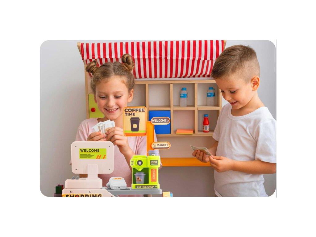 Jste připraveni proměnit dětský pokoj v rušný obchod s vlastní kavárnou? Tato interaktivní hrací pokladna Ricokids RK-822 s kavárnou a kompletní sadou příslušenství je přesně to, co vaše dítě potřebuje pro hodiny kreativní a vzdělávací zábavy! Živé barvy stimulují dětský zrak a detailně propracované příslušenství, jako je otevírací pult, lednice a funkční kávovar, vtáhne vaše ratolesti do role prodavačů a baristů. Nechte je hravě zkoumat nové sociální role a naučte se základní počty s hračkovými mincemi a bankovkami.