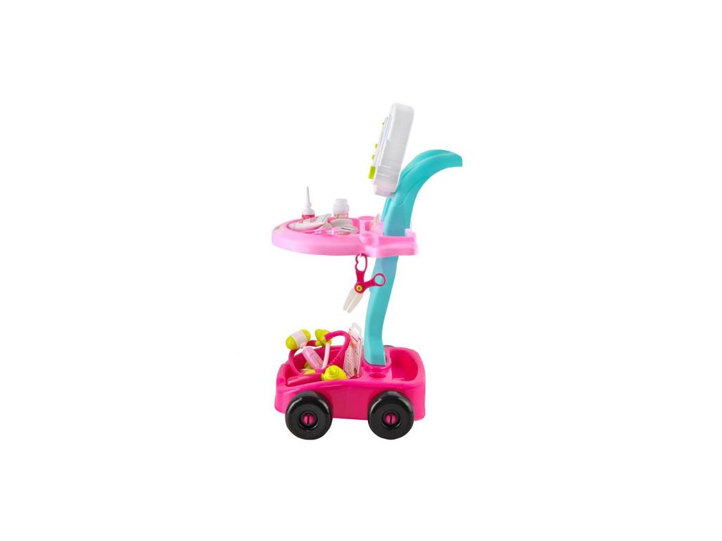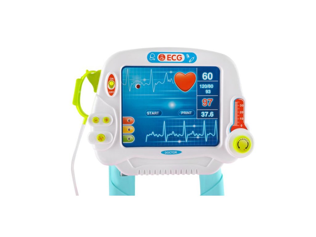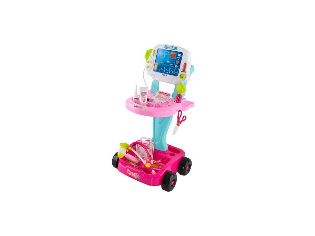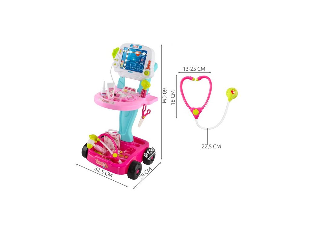 Sada se skládá z 18 prvků, které jsou umístěny v šikovném a lehkém vozíku na 4 kolečkách. Množství dílů umožňuje praktické využití sady. Lékařské příslušenství a 2-úrovňový vozík s imitací obrazovky EKG a madlem umožňují pestrou a mnohonásobnou zábavu. Díky „jízdečce“ nemá dítě žádný problém hračku může přesunout do jiné místnosti nebo si ji vzít na zahradu či na procházku. Kreativní trávení času bude možné s napodobeninami lékařských přístrojů, jako je stetoskop, ORL otoskop, měřič tepové frekvence, teploměr, zubní zrcátko, neurologické kladívko, injekční stříkačka, nůžky, pinzeta, oční kapky, mýdlo na ruce v tubě, miska, skalpel, brýle bez brýlí, lahvička, připínací placka s místem pro zadání jména a nalepení fotografie, dále plastový sešit s možností zavěšení.