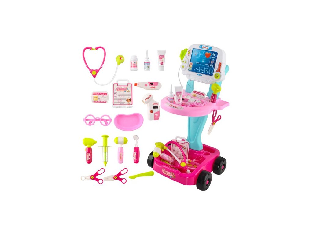 Interaktivní Lékařský Set pro Děti - Růžový Vozík s 18 Nástroji a Zvukovými Efekty je ideální hračka pro malé lékaře. Součástí setu jsou různé nástroje, které napodobují skutečné lékařské přístroje. Děti si tak mohou hrát na lékaře a zároveň se učit o zdravotnických procedurách.