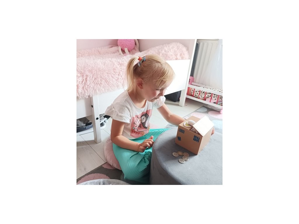 ? ZNOVU POUŽITELNÝ – prasátko se skládá z plastové kartonové krabice. Po nasbírání dalších mincí je můžete vyndat z krabice, spočítat je a utratit za vysněnou hračku nebo splnit sen svému dítěti - nemusíte ho ničit, abyste získali peníze.