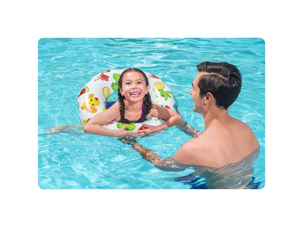 Nechte se okouzlit krásnou barevnou grafikou a pohodlím, které tento plovoucí kruh poskytuje. Je navržen tak, aby zaručoval stabilitu, což ho činí ideálním pro ty nejmladší. Perfektní společník pro vaše děti, které si chtějí užít léto naplno a bezpečně!