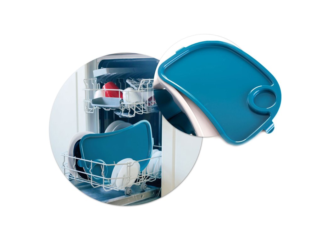 Snadné používání - odnímatelný tác s přídavným odnímatelným polstrováním se zvýšenými okraji, které zabraňuje posouvání jídla nebo hrníčků, zabudovaná kolečka v zadních nohách. Rychlé čištění - díky odnímatelnému tácu můžete po jídle během chvilky uklidit - můžete jej dokonce umýt pod tekoucí vodou!