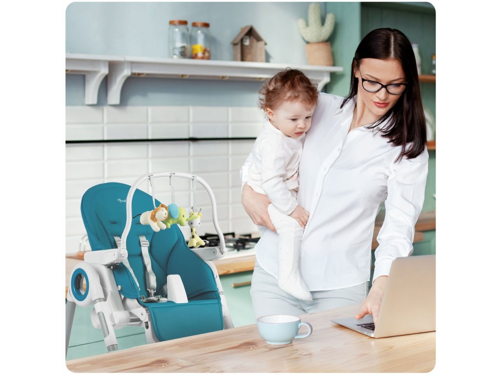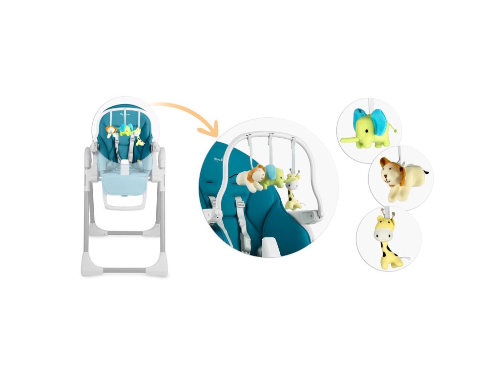 Bezpečná - certifikovaná podle normy EN 14988. Součástí balení je funkční čelenka s hračkami. Čelenka s hračkami skvělá zábava pro vaše děťátko! Židlička, která se přizpůsobí vašemu dítěti Belo je moderní, multifunkční židlička pro krmení vašeho dítěte od 6 měsíců do 3 let. NÍZKÉ NASTAVENÍ VÝŠKY Funkce nastavení výšky je velmi užitečná pro každého rodiče. Můžete efektivně nastavit výšku sedátka podle situace. 5STUPŇOVÝ NASTAVITELNÝ NÁKLON ZAD Můžete snadno přizpůsobit židličku aktuálnímu věku vašeho dítěte. NASTAVITELNÝ NEBO ODNÍMATELNÝ TÁCEK Můžete nastavit polohu tácu nebo ho odejmout, když chcete dítě vyndat ze židličky nebo ho přinést ke stolu na rodinné jídlo.