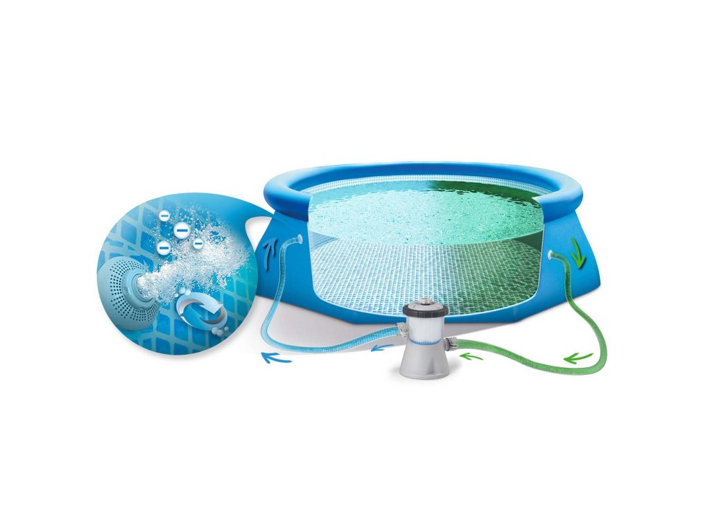 Díky kompletnímu vybavení, které zahrnuje mimo jiné filtrační pumpu, termometr, pokrývku a dokonce i barevnou míč, budete mít vše potřebné ihned po rozbalení. Už žádné shánění jednotlivých komponentů, vše je perfektně sladěné a připravené na okamžité použití. Vytvořte si své vlastní vodní ráj přímo na zahradě!