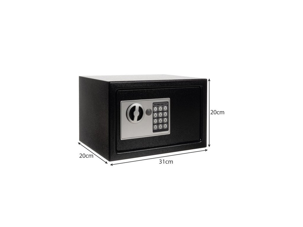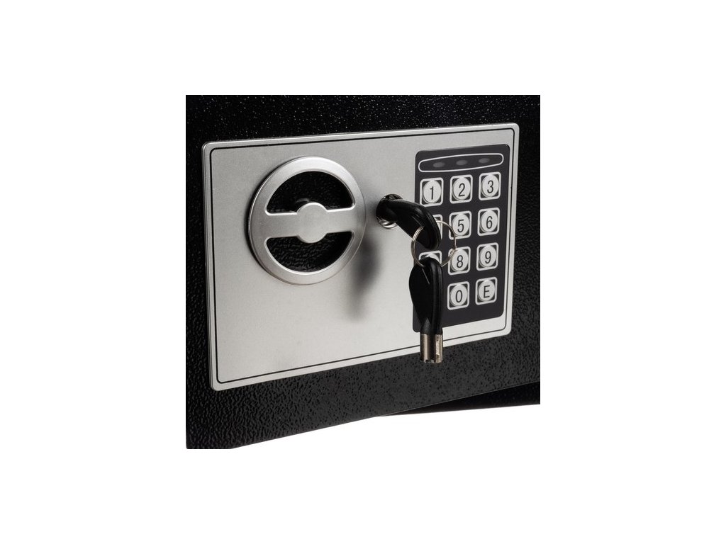 Elektronický trezor je perfektním řešením pro uložení cenných předmětů ve vaší domácnosti, kanceláři nebo na jiném místě, kde je důležité cennosti zabezpečit apod. Trezor bude dobře fungovat i v hotelovém pokoji, poskytne klid hostům, kteří budou moci bezpečně uložit nejen peněžní prostředky, ale i cestovní doklady. Rozměry prostoru uvnitř trezoru umožňují pojmout listy až do velikosti A5 a nejrůznější drobné předměty vysoké hodnoty.