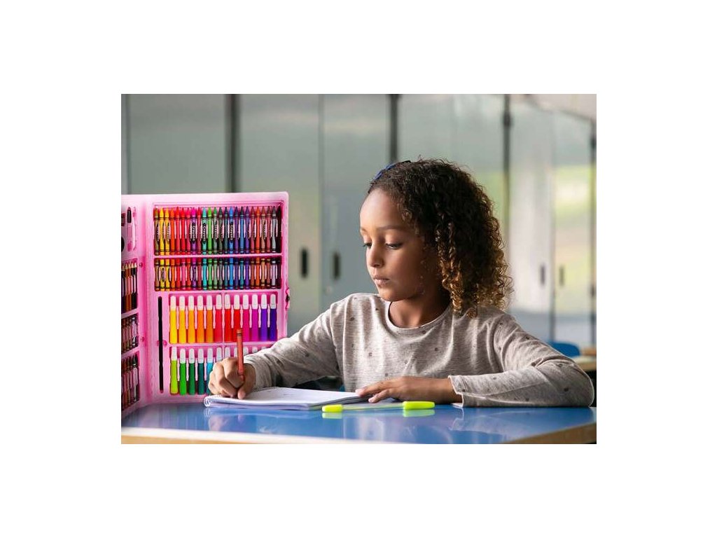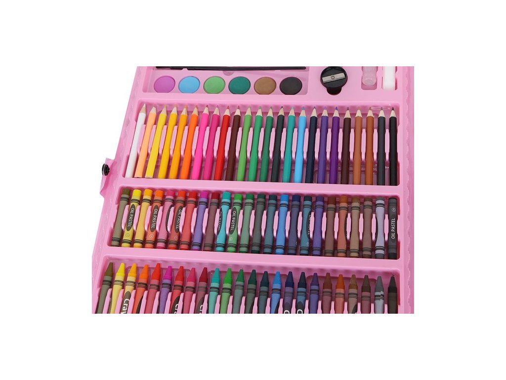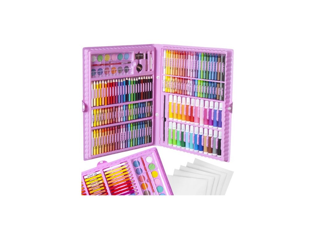 Velká sada na malování a kreslení je to skvělá věc, jak začít umělecké dobrodružství pro fandy i pro zkušenější umělce. Sada je funkční a skládá se z: 16 8 užitečný díly s praktickým kufrem . Velké množství prvků umožňuje praktické využití a umožní realizovat různé kreativní nápady. Pomocí obrovského výběru 24 pastelek, 24 fixů, 48 olejových pastelů, 48 svíčkových pastelů, 12 akvarelových barev, ořezávátka, lepidla, korektoru, gumy a archů papíru A4 snadno vytvoříme ty nejnáročnější, nejkreativnější a originální díla. Nádobí má širokou a atraktivní barevnou škálu.