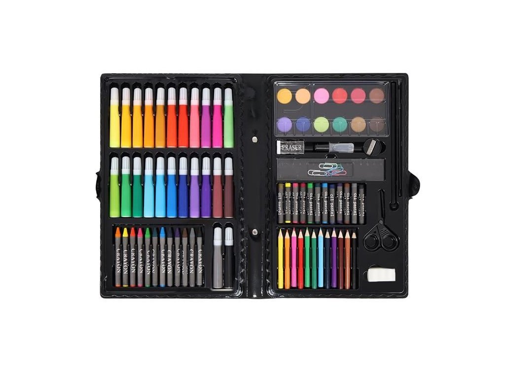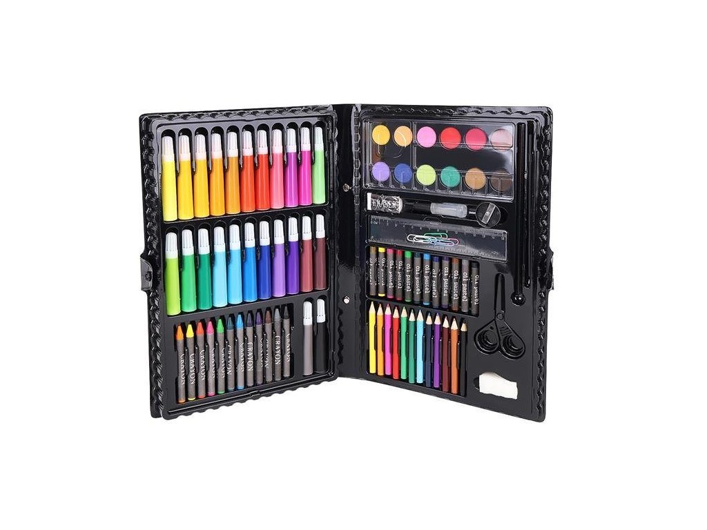 - 86 PRVKŮ – pomocí velkého výběru 12 pastelek, 24 fixů, 12 olejových pastelů, 12 svíčkových pastelů, 12 akvarelových barev, malířskou paletu, štětec, houbu, tužku, nůžky, ořezávátko, lepidlo, pravítko a barevné sponky dítě snadno vytvoří ta nejnápaditější, nejkreativnější a nejoriginálnější díla .