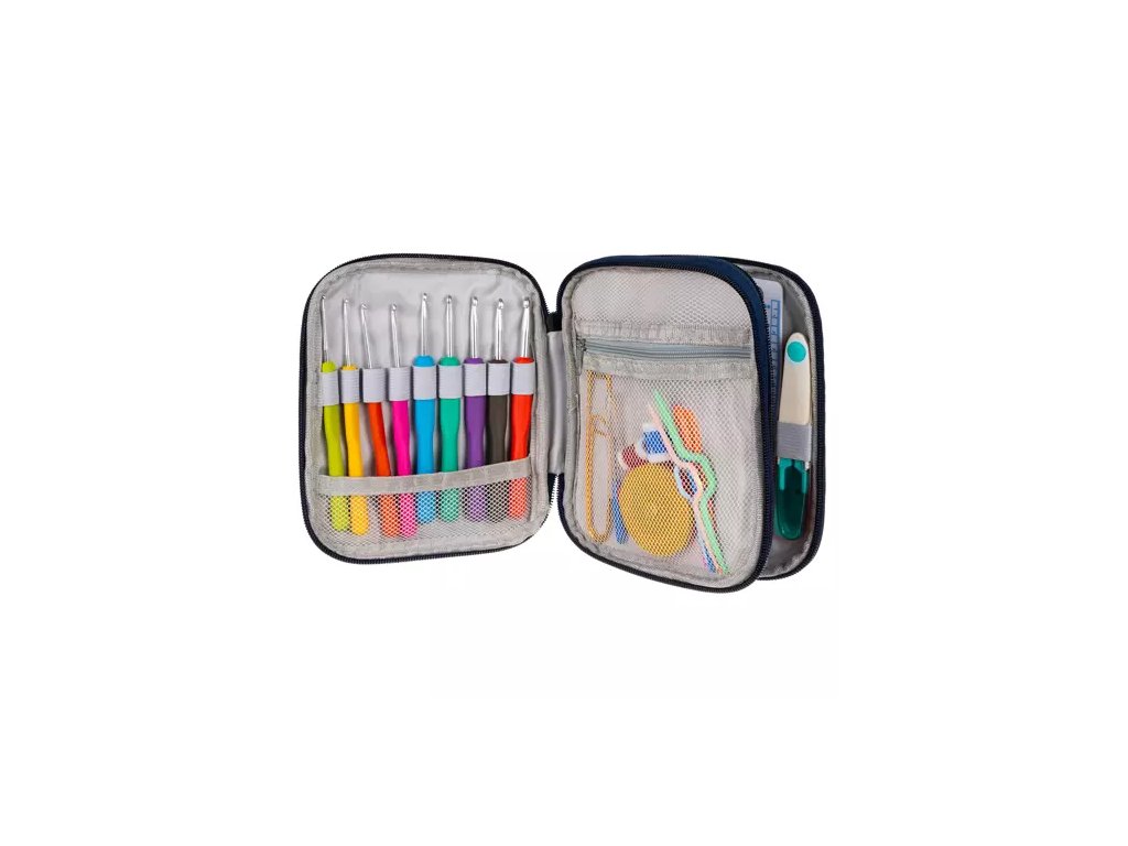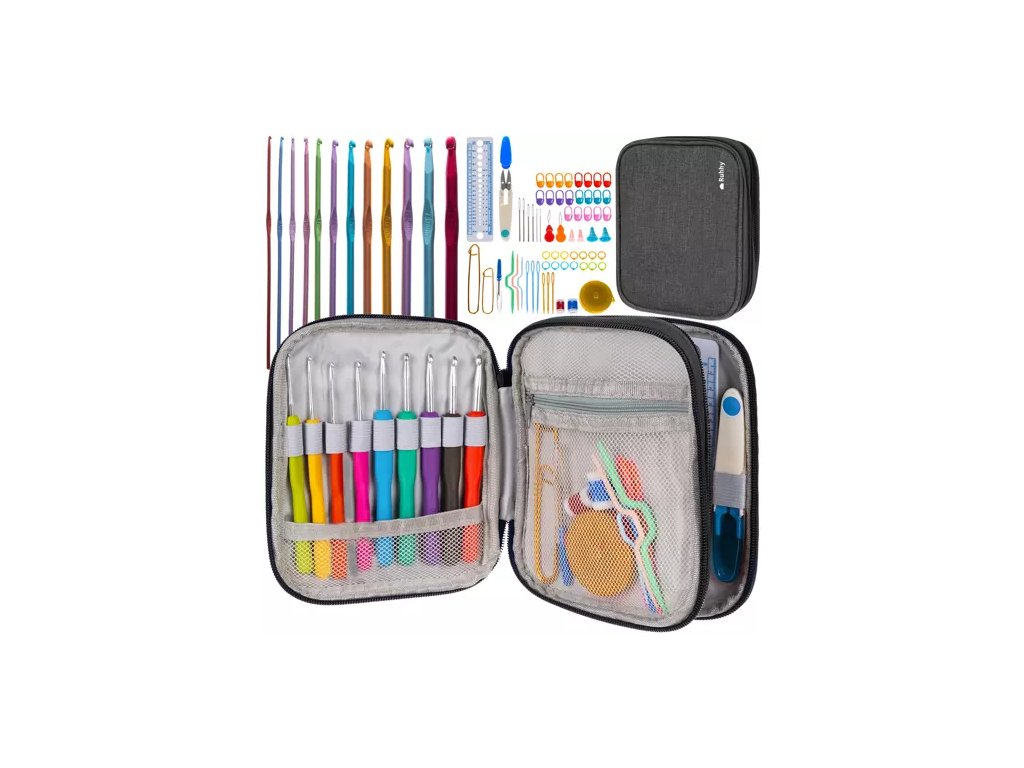 Tato jedinečná sada se bude jistě hodit každému, kdo své dobrodružství s háčkováním začal nebo se chystají začít. Látkové pouzdro obsahuje až 86 prvků: háčky, jehly, nůžky, pravítko a mnoho dalšího potřebného příslušenství. Háčky jsou vyrobeny z hliníku, díky kterému skvěle padnou do ruky a urychlí vaši práci. Jsou lehké, pevné a mají hladký povrch
