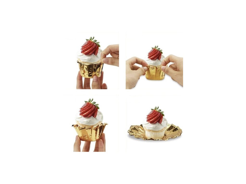 - PRAKTIČNOST - díky odolnosti vůči tuku a vodě se vložky na cupcake snadno používají a nevyžadují dodatečné vymašťování pečicí formy. Každý cupcake upečený v košíčku je izolován od formy, což zajišťuje vyšší úroveň hygieny při pečení . Zlaté vložky do košíčků dodávají každému pečivu eleganci a styl, díky čemuž je vizuálně atraktivnější.